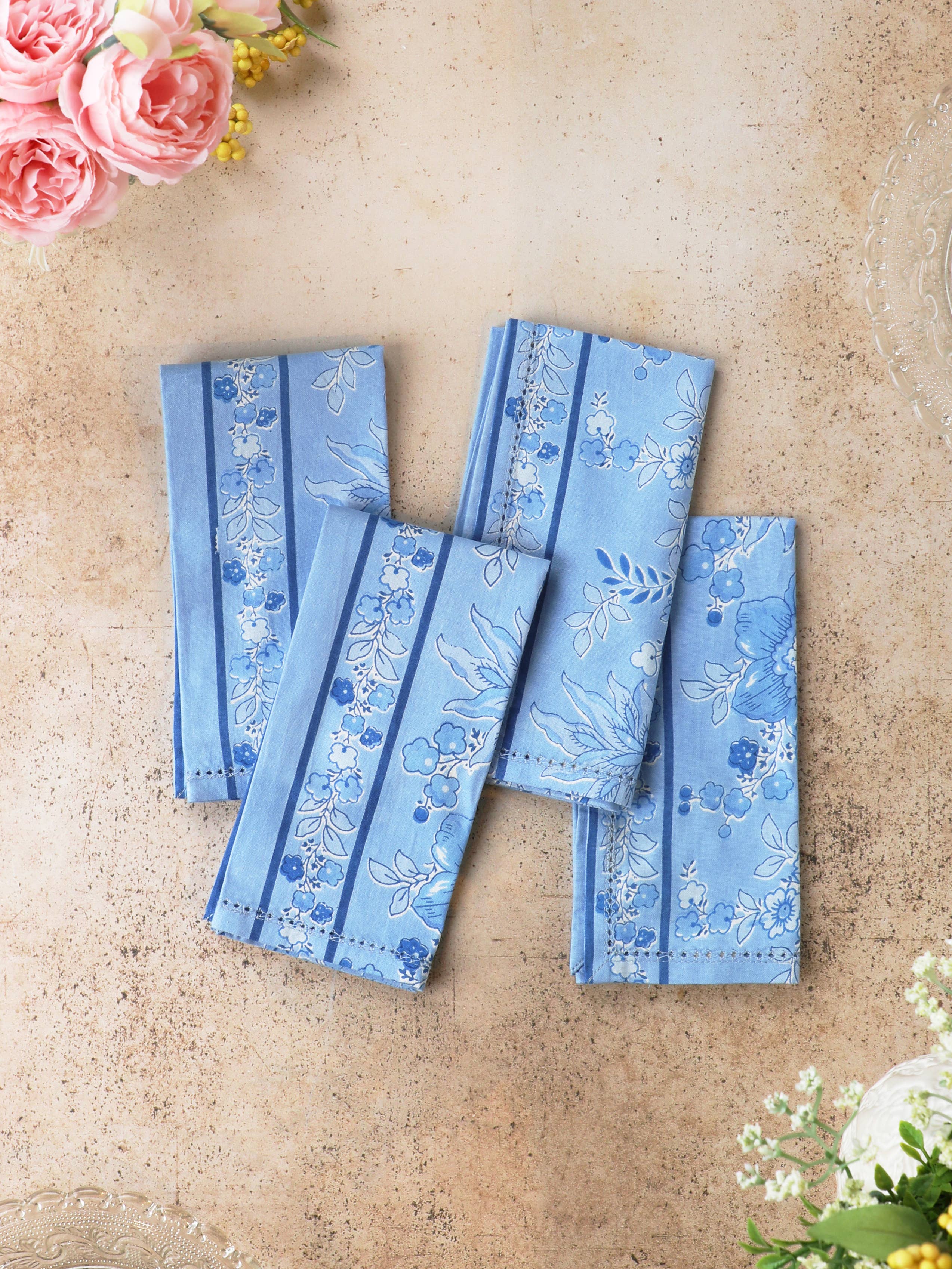 Artisan Hand-Blocked Cloth Napkins – 100% Cotton – Set of 4