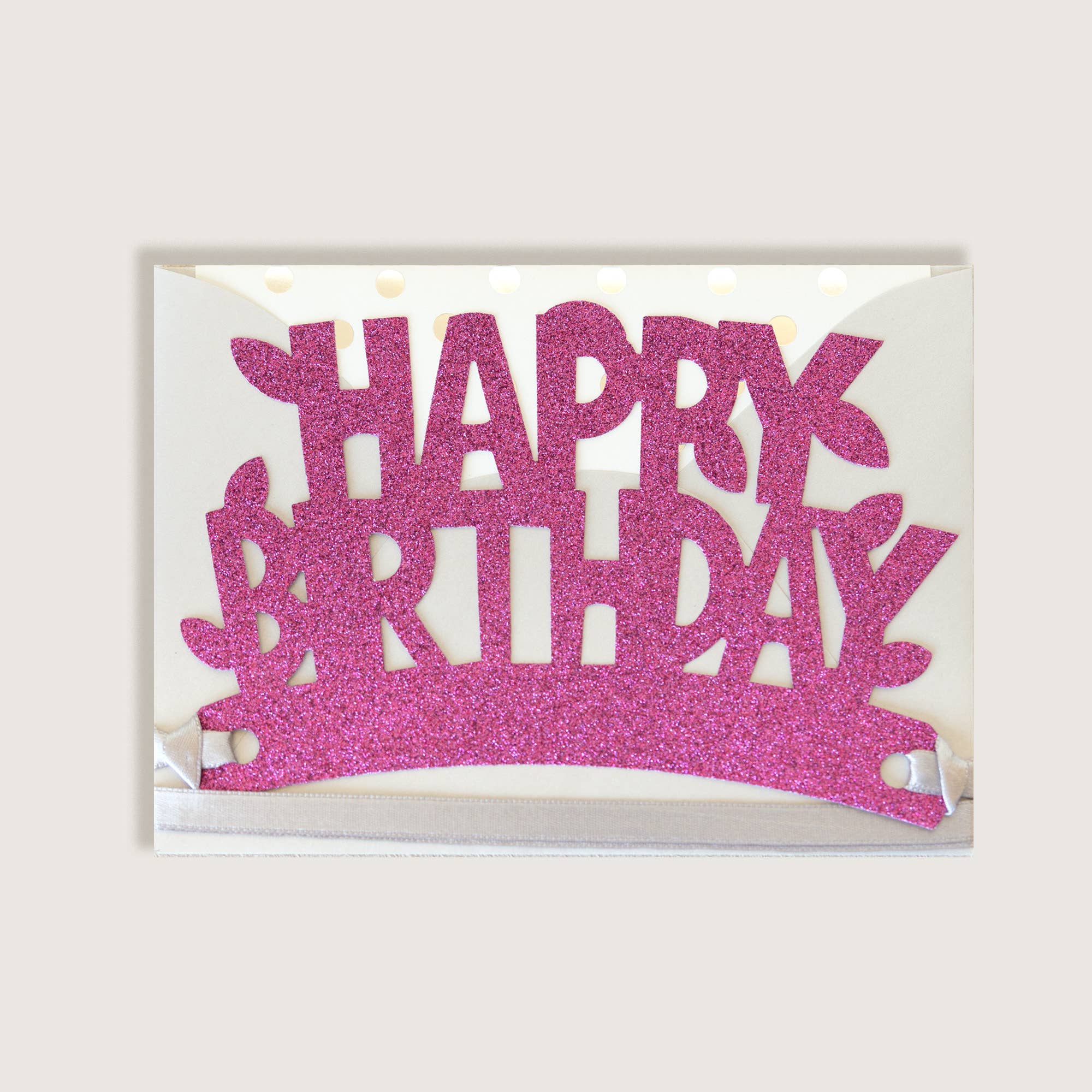 Happy Birthday Glitter Crown in Gold Gold foil liner Blush Envelope Cello Sleeve "Paper Crown" label identified on sleeve for your customers