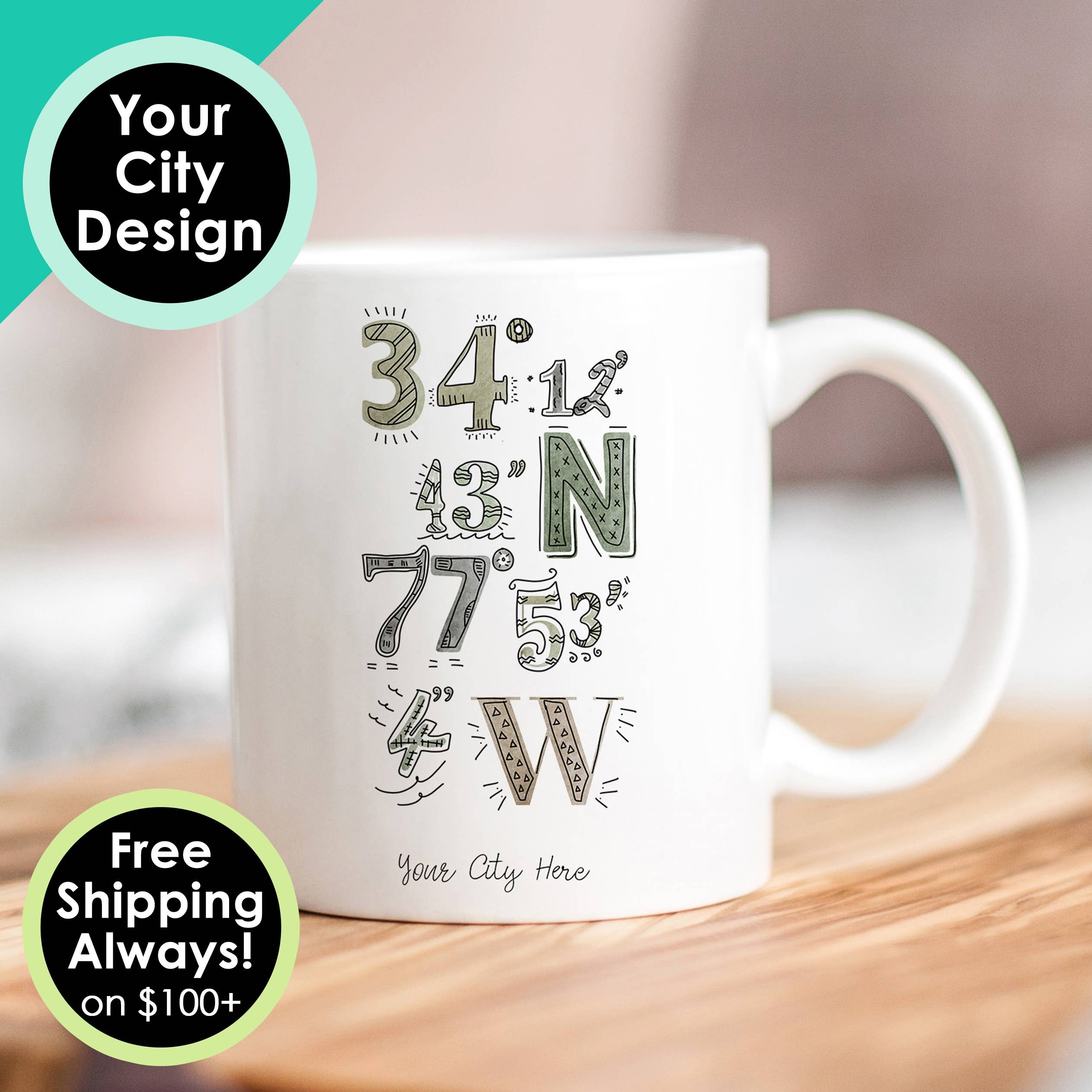 Longitude/Latitude Custom Name Drop Custom Coffee or Tea Mug