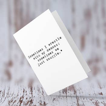 “‘Try not to look confused or lost. Get your shit together, you can do this.’ – Pep talk outside of Home Depot” DETAILS // • Size: 5.5 x 4.25 • Inside Message: blank • Paper: white cotton • Envelope: brown bag • Printing: letterpress • Ink: black
