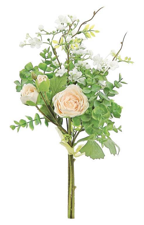 Presenting our Elegant Eucalyptus and Artificial Rose Bouquet, a versatile and exquisite floral arrangement perfect for a variety of occasions. Crafted with meticulous attention to detail from high-quality cloth, this bouquet exudes timeless elegance and charm. Versatile Usage: Suitable for bridal bouquets, bridesmaid bouquets, and as an enchanting addition to your home decor. Timeless Elegance: Featuring lifelike eucalyptus leaves and artificial roses, it creates a romantic and enduring ambiance. Size Specifications: Overall Length: 18 inches, Flower Head: Diameter 3 inches, Height 2 inches, Bud: Diameter 0.75 inches, Height 1.5 inches Abundant Composition: Each bouquet comprises 3 flower heads, 6 flower buds, and an assortment of complementary leaves and berries. Elevate your special moments and spaces with this beautifully crafted bouquet, blending the beauty of nature with the convenience of artificial flowers.