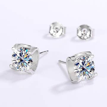 ✨ VVS1 D-Color Moissanite Stud Earrings in 14K Gold / Silver (White Gold) ✨ Delicate. Timeless. Effortlessly radiant. These classic moissanite stud earrings are designed to capture quiet beauty — a refined sparkle that feels intimate, elegant, and endlessly wearable. Perfect for those who love understated luxury with meaning. 💎 Stone Quality • Premium D-Color Moissanite • VVS1 clarity — eye-clean, flawless brilliance • Excellent Round Brilliant Cut • Exceptional fire and sparkle, brighter than traditional diamonds • GRA Certification & diamond-tester approved ✨ Setting • 14K Gold (Yellow or White) • Secure, classic 4 prong stud design • Backing: Secure Push-back post (Stamped S925) • Hypoallergenic and comfortable for daily wear - COMES in Retail Ready package - ** Size Options - SOLD AS A PAIR ** Available in multiple carat sizes — from subtle glow to statement shine. Choose the size that feels like you. CHOOSE THE PERFECT SPARKLE (Carat Weight per Pair): 1.0 CT Total Weight: (0.5ct + 0.5ct) – 5mm stones. Subtle, sophisticated, and perfect for daily wear. 2.0 CT Total Weight: (1.0ct + 1.0ct) – 6.5mm stones. The iconic "must-have" size for timeless appeal. 4.0 CT Total Weight: (2.0ct + 2.0ct) – 8mm stones. Breathtaking brilliance for those who love to stand out. Simple beauty. Endless light. A piece you’ll reach for every day. ✨