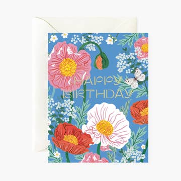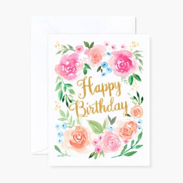 Happy Birthday! single card in cello sleeve 4 1/2" x 6 1/4" 100lb matte stock white envelope printed in Maine FSC certified