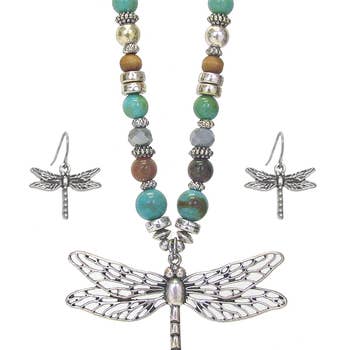 Wholesale FR2910 Antique Silver Abalone Dragonfly Necklace Set