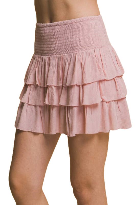 Cotton Natural women’s Ruffle Skirt. This flirty skirt features a crochet band with buckle around the waist. The back waist features a comfortable elastic band. This stylish skirt is made from the finest Pima Cotton. Soft and comfortable with a breathable relaxed fit.