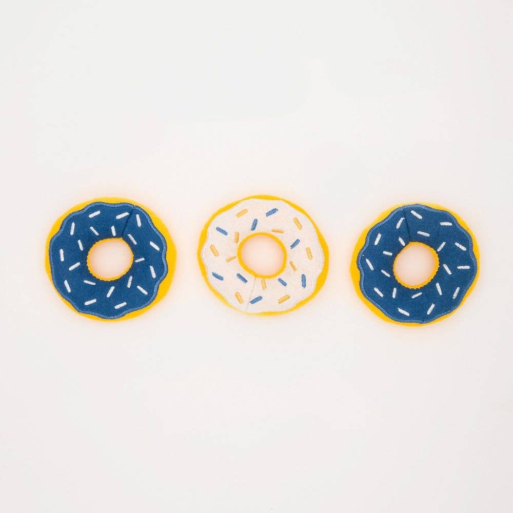 These delicious looking donut chews are made of 100% natural, non-toxic latex. They have a built-in squeaker and are gently stuffed for an enhanced chewing experience. The texture of the donut has been carefully replicated so it looks incredibly realistic. The perfect toy for puppies, small and medium breeds who are gentle chewers Size (LxWxH - inches): 4 x 4 x 1.8"