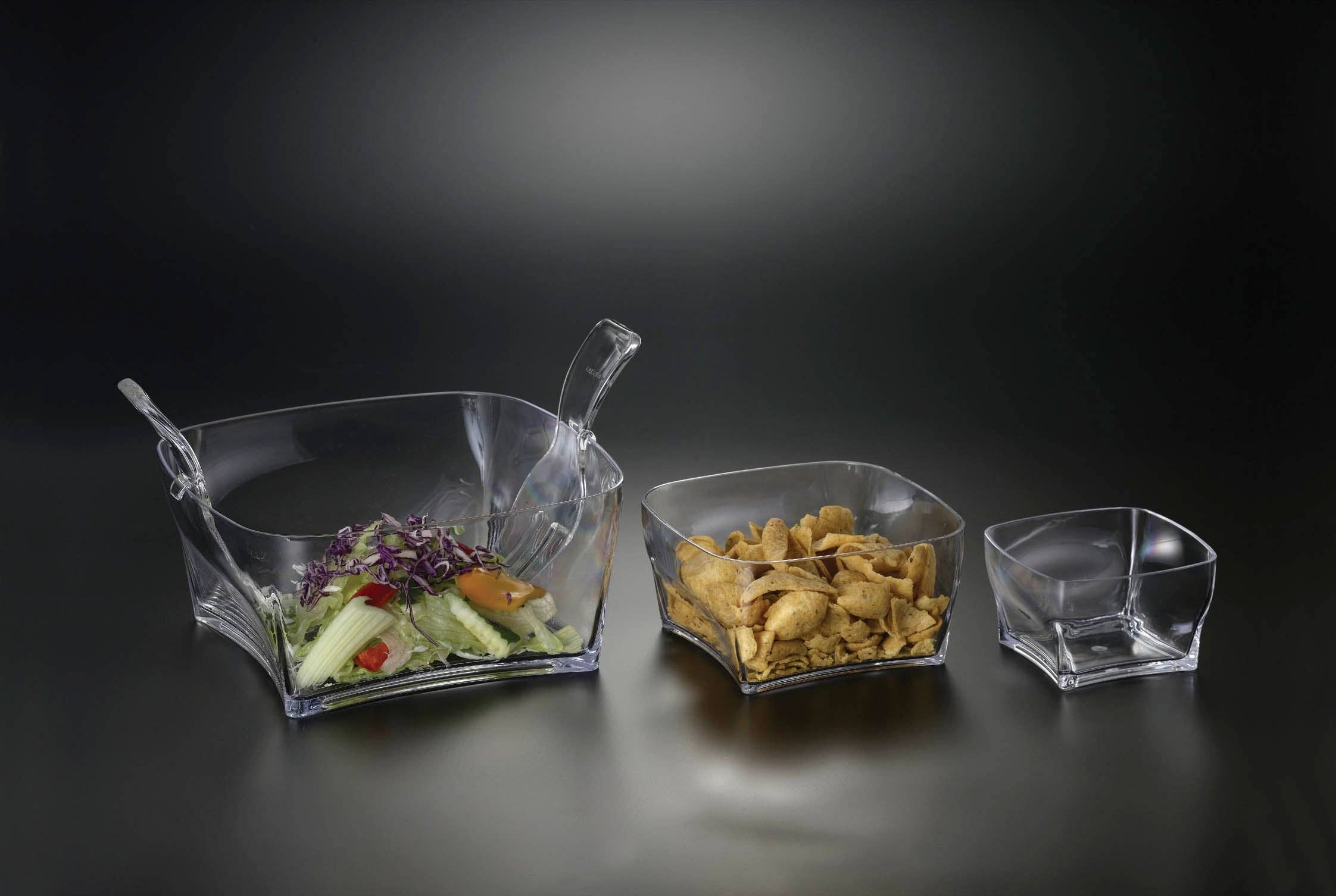 Large boat shape bowl from Huang Acrylic. Its elegant clear design and durable construction will enhance your kitchen and dining. Huang Acrylic is an American company that is focused on quality, design, and style for the discerning customer since 1978.