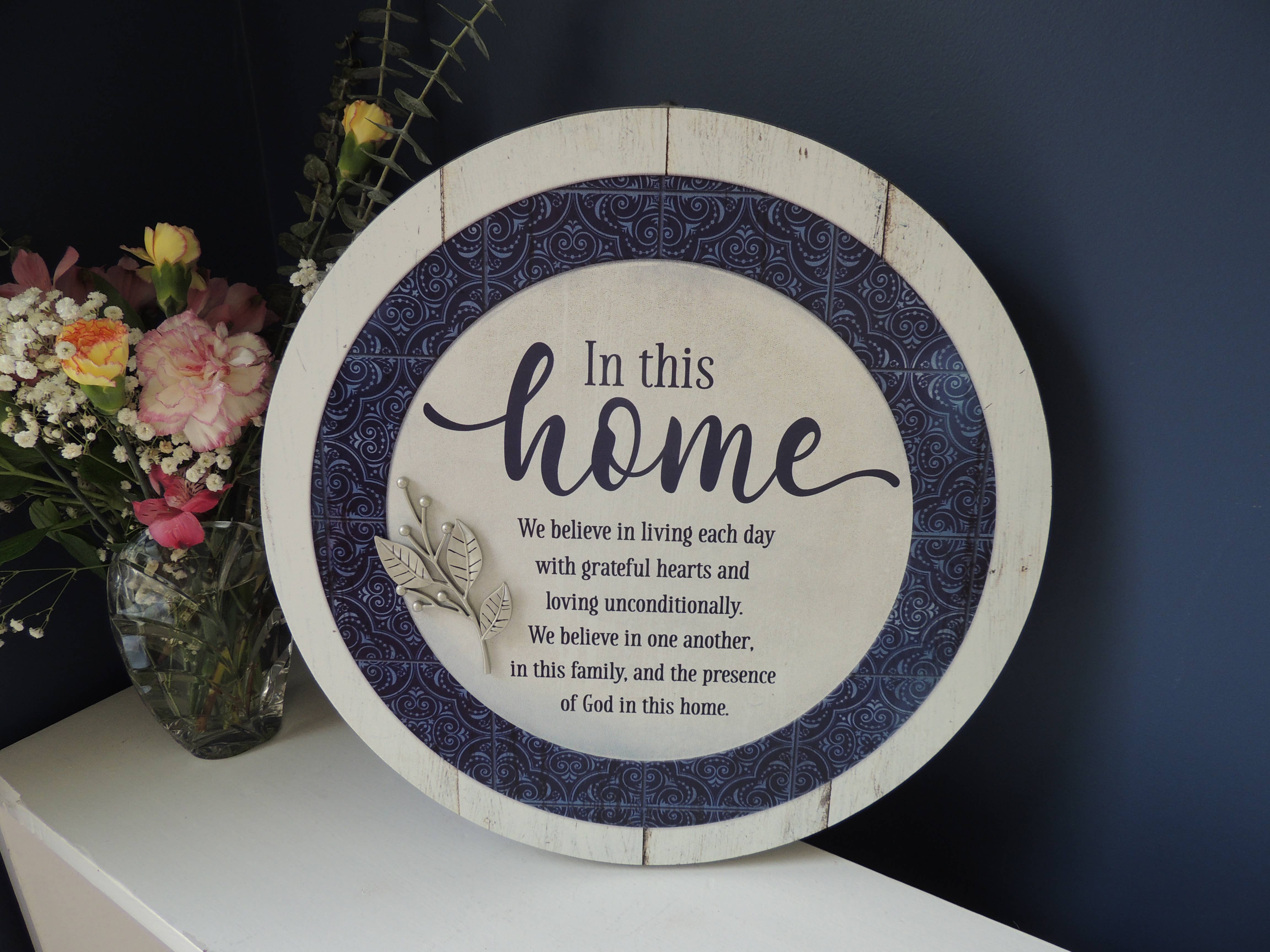 Shadow Box Style Framed Wall Decor Features A Portion Of The Popular Serenity Prayer: God, Grant Me The Serenity To Accept The Things I Cannot Change; Courage To Change The Things I Can; And The Wisdom To Know The Difference. Text Is Printed On The Underside Of Glass That Sits .75In Above A Floral-Accented Pale-Green Background. Frame Is MDF Wood With Woodgrain Finish. Print/Glass Size Is 14 x 11; Outer Frame Size Is 15 x 12 x 1.25. Hanger On Back. Assembled in the US of imported materials.