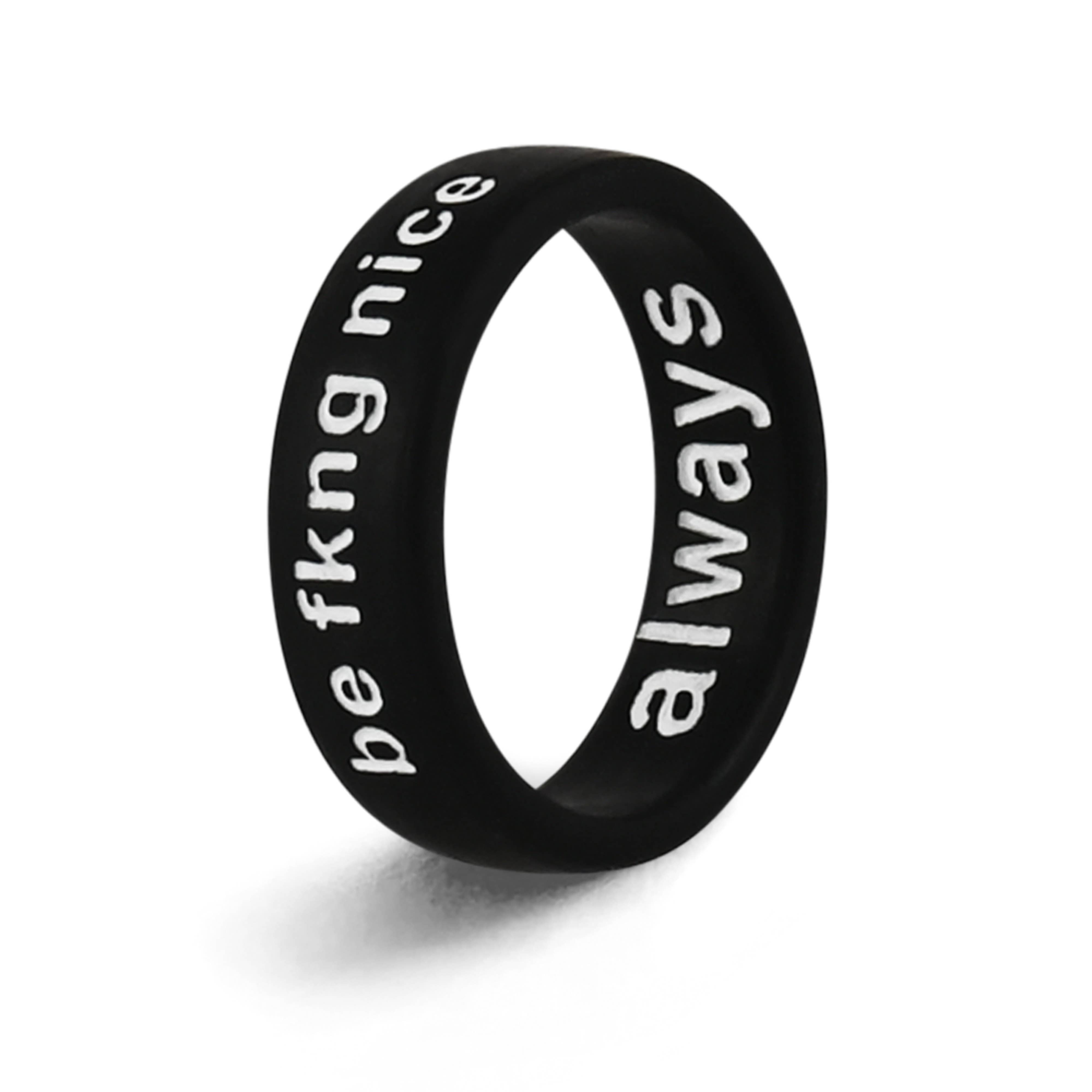 Girls rule!! Details Flip Rings are medical grade silicone, hypo-allergenic, ultra-comfortable, practically indestructible and won't rub off on your skin or clothes. Weight: Incredibly light Width: 6mm Thickness: 2mm Size Flip Rings are one size. They are designed to fit snug but will stretch and conform to your finger. Technically speaking they are a size 7 (17.2mm diameter) which is the average women's ring size in the U.S. Not sure what your ring size is - it doesn't matter. Wear them on any finger, thumb or even toes. It's all good.