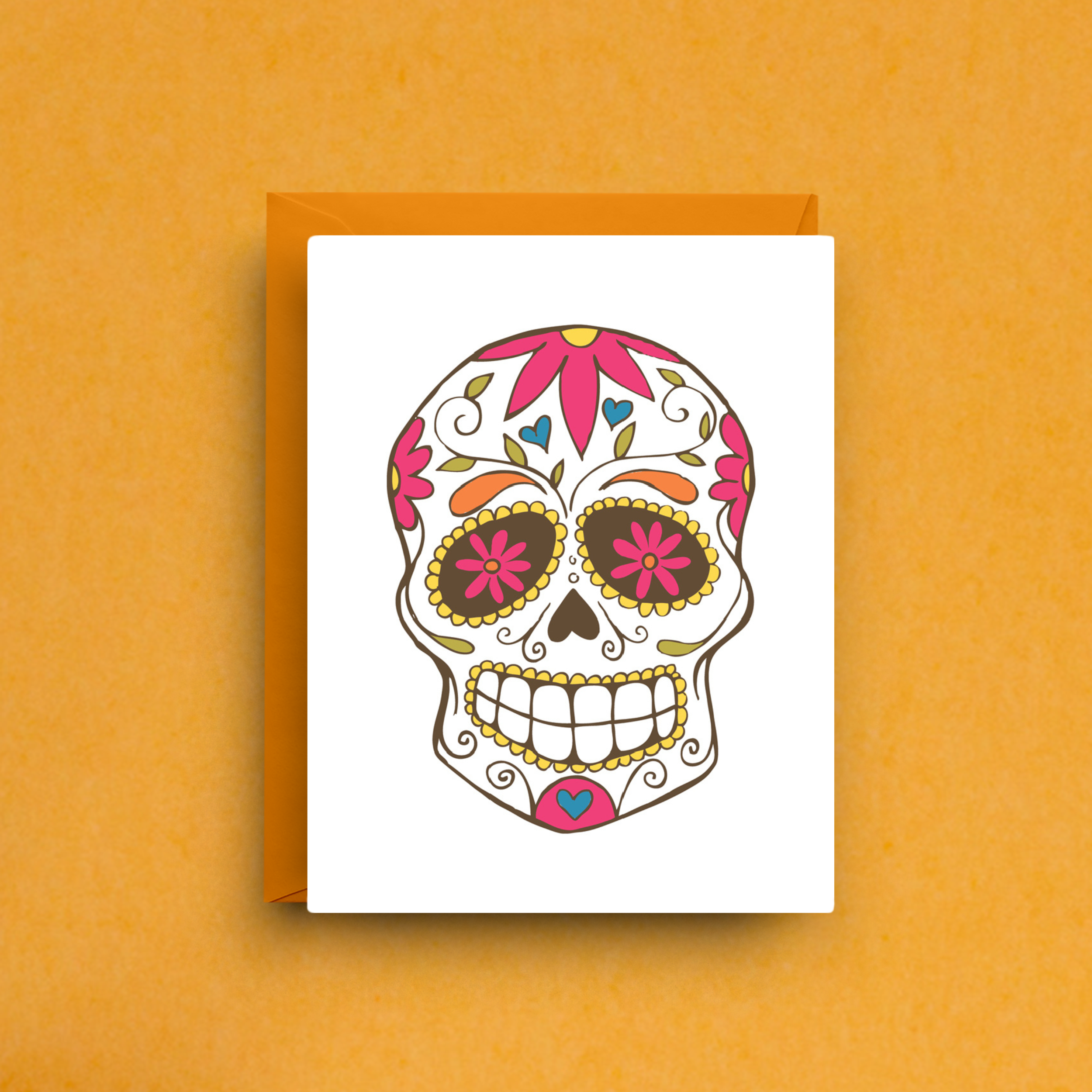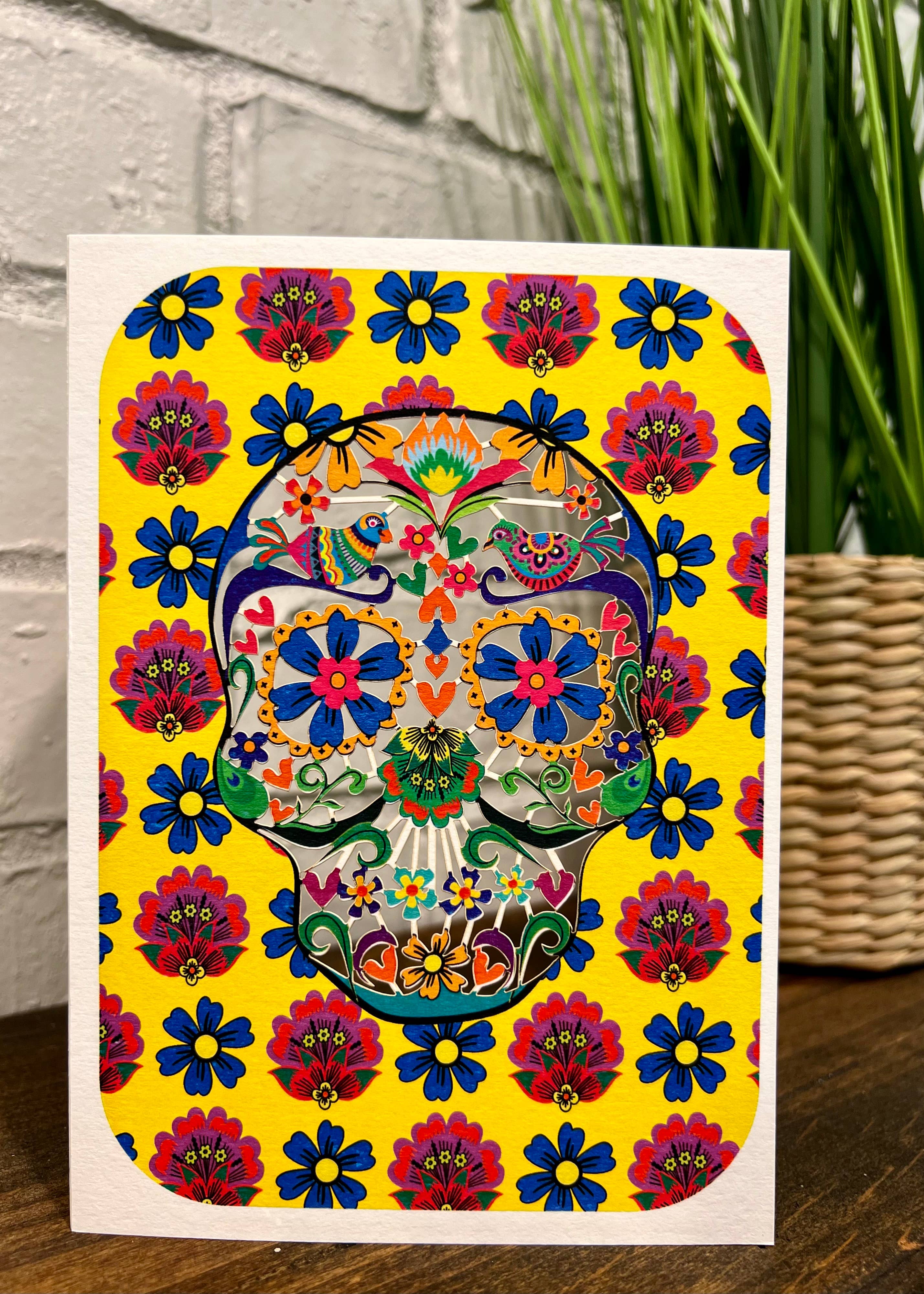 A blooming meditation on life, death, and transformation, Skull Garden features fiery orange blossoms sprouting from a glowing skull vase. With surreal symbolism—a burning house, a watchful eye, falling petals—this mystical artwork merges beauty and decay in a dreamlike tableau. Details: • Size: 5" x 7" (A7 Size) • Blank interior • Includes matching envelope • Packaged in a protective crystal-clear sleeve • Printed in the USA on premium cardstock • Original artwork by Isabelle Bryer • Ideal for art-forward retailers, bookstores, and gift shops. Ideal for lovers of gothic, surrealist, and botanical art Striking and symbolic, this card makes a powerful impression in boutique stationery collections or gift shops with a taste for the unusual.