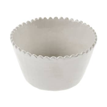 From a registry staple to everyday dining, our Signature White Collection is a must-have for any home. This adorable trifle bowl features our classic hand-painted brushstrokes, ruffled edge, and versatile style that goes from the oven to the table with ease. Trifle bowls are a classic dessert dish, and we love this design for displaying fruit or puddings. It also makes a lovely trinket holder in the bedroom or by the front door. Show off what you bake with our Signature White Ruffle Footed Trifle Bowl. This Stoneware 54oz bowl (9in Diameter x 7in H) is dishwasher safe and microwave safe.