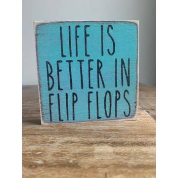 It's a Flip Flop kinda day - teal flip flops Plank style surfboard plaques, signs - measure 5" x 16" size. These can be name dropped - email sales@sjtent.com and let us know exactly what the destination name should be. Beach plank style sign. Plaques