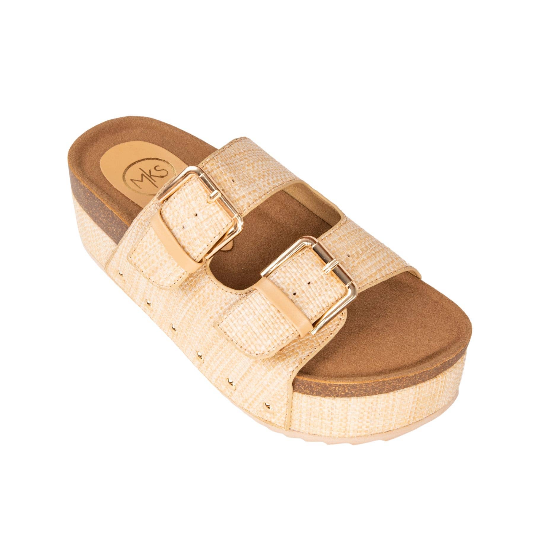 Nina 1 Cork Platform Slide with Vintage Buckles and Studs