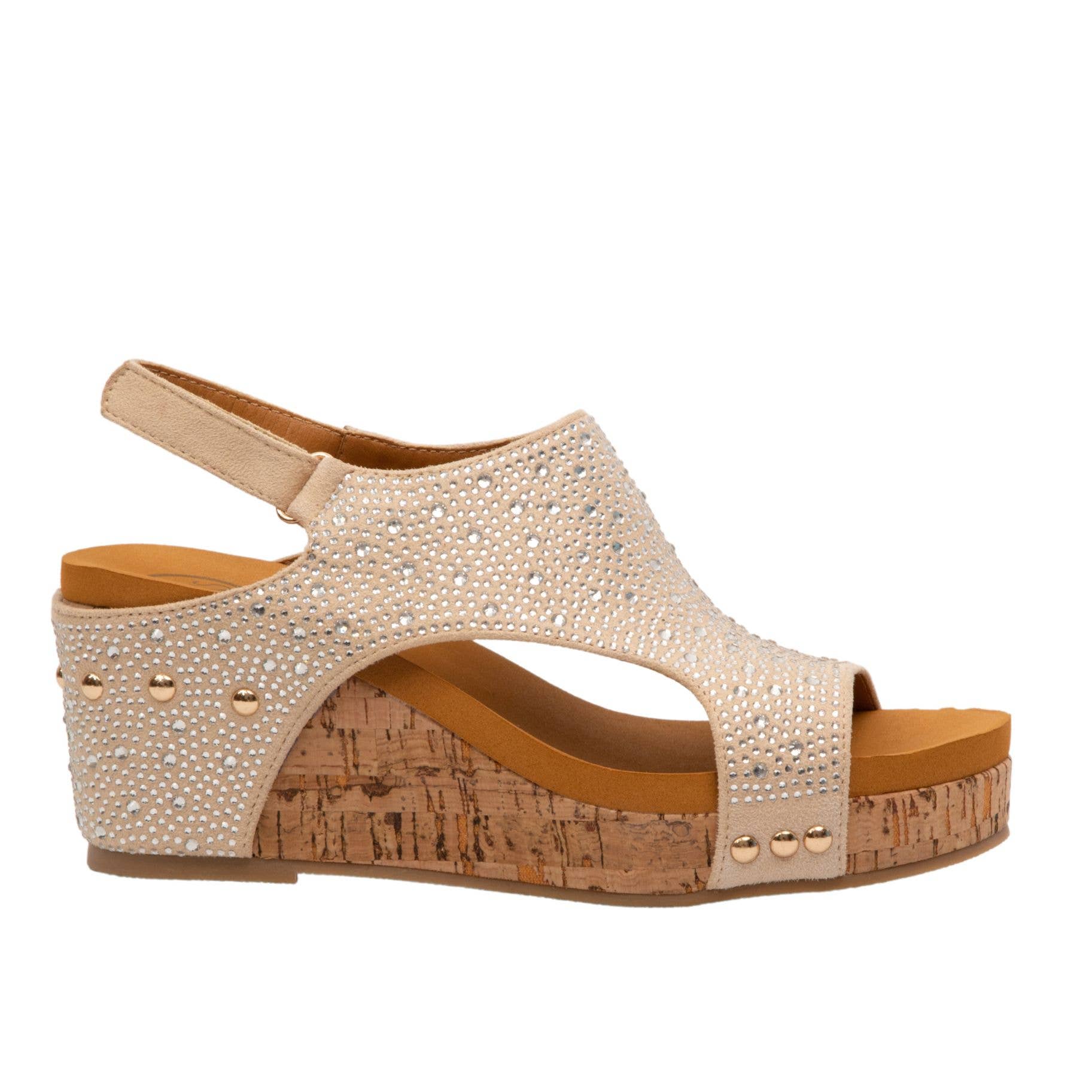 BARB Rhinestone Cushioned Women Slingback Velcro Cork Wedge
