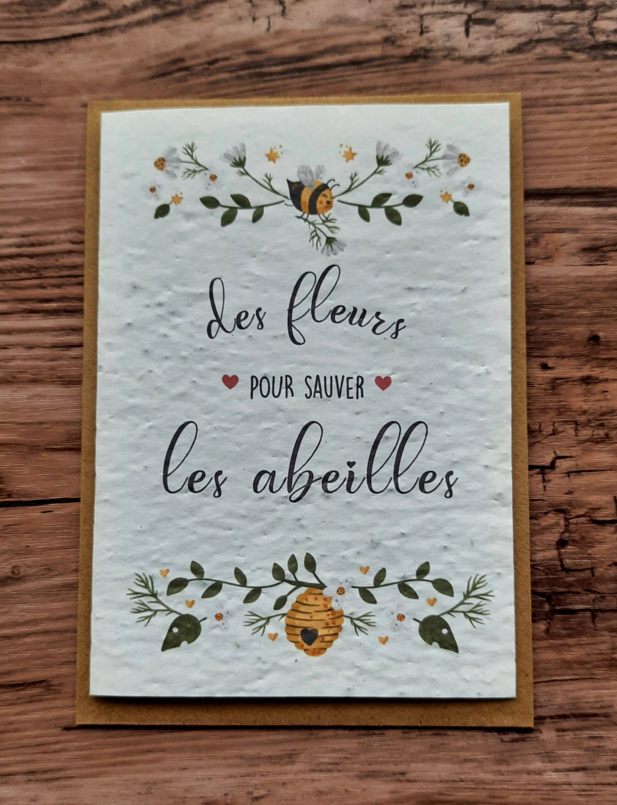 An original and natural way to wish a happy birthday. Printed on paper seeded with wild flower seeds You just have to put it in the ground and water a little every day to see the seeds germinate after a week. Seed: field flowers. You will receive: An A6 folded card to plant (10 × 15 cm). A rigid blank card to write your word. Kraft envelope available. Printed in France on 100g paper Grounding instructions provided. Each leaf is unique and contains dozens of carefully selected, untreated seeds. Size: A6 Paper: fully biodegradable, 100g paper composed of hundreds of seeds. Included with the card: a kraft envelope, a rigid white card to write your word.
