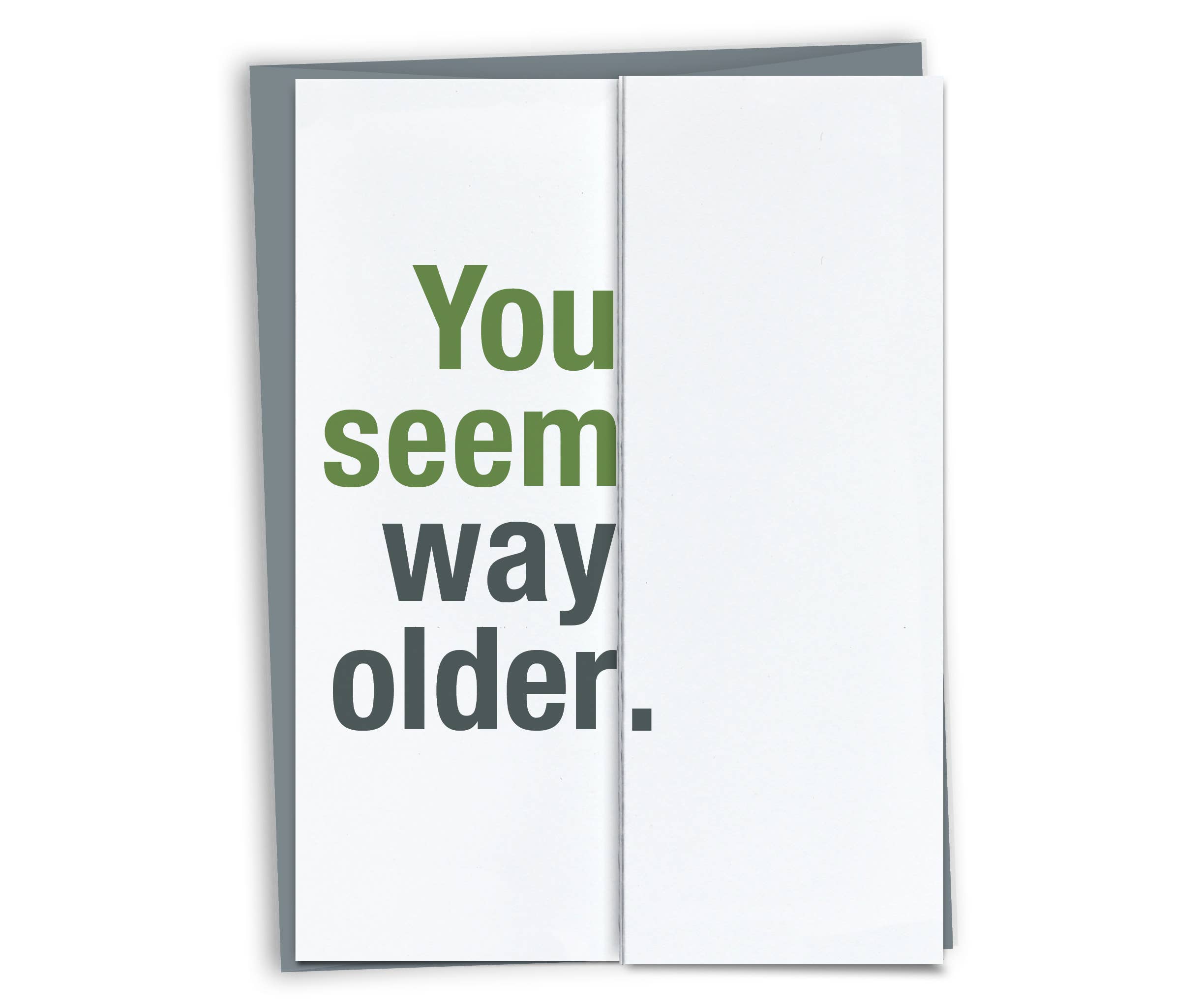 A great example of how our secret-reveal fold-out cards work. Direct and surprising at first glance, but opens to reveal an opposing, softer message. It lets the receiver decide which sentiment they want to be true! Closed: Let's get wasted Opened: Let's get some wine and relax, not waste time on less sophisticated celebrating. • A6 sized (4.5" x 6.25") when closed. The right-side accordion fold opens to reveal a surprising message (open size is 13.5" x 6.25"). • Includes an envelope. ------ Funny Birthday Card, Funny Age Card, Funny Greeting Card, Snarky Birthday, Sarcastic Birthday, Sarcastic Card, Naughty Card, Unique Card, Folding, Fold-out