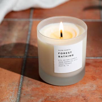 Calm your nerves and clear your mind. Our custom blend of fir, pine, and patchouli essential oils - designed to evoke the meditative experience of forest bathing - is calming and grounding, with bright notes of citrus and a woody, resinous undertone. From our 100% essential oil fragrances to our cotton wicks, our products redefine all-natural luxury. Our candles are vegan and free from artificial dyes and ingredients. You will enjoy a lighter, naturally-enticing aroma when burning a candle scented only with pure essential oils. From ingredients to vessels, Slow North candles are designed with sustainability in mind. We’re proud to use only soy wax, a long-burning, biodegradable and renewable resource. These 8 oz candles are hand-poured into American-made, frosted glass tumblers and topped with a wildflower seed paper dust cover. Volume: 8 oz All-Botanical Ingredients: Fir Essential Oil, Pine Needle Essential Oil, Patchouli Essential Oil, and Soy Wax