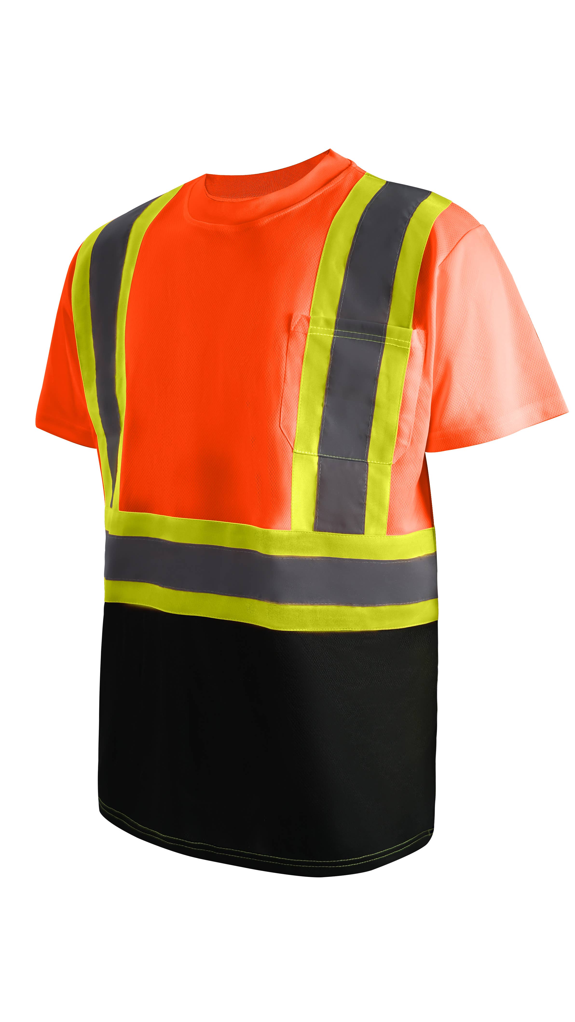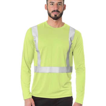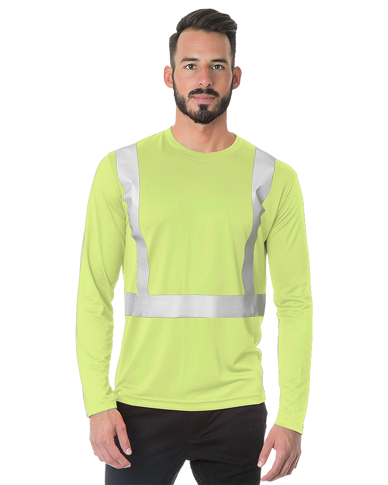 Style#ST3000 Class 3 safety t-shirt, long sleeve. Meets ANSI/isea 107-2015 standards. Color: lime green/yellow. Feature: 100% durable soft fine jersey mesh. "Wrinkle-free", left chest pocket, reflective on sleeves. 2" grey reflective stripes, meet class 3 classifications. Imprint area ( back of shirt): about 8" w x 10" h.