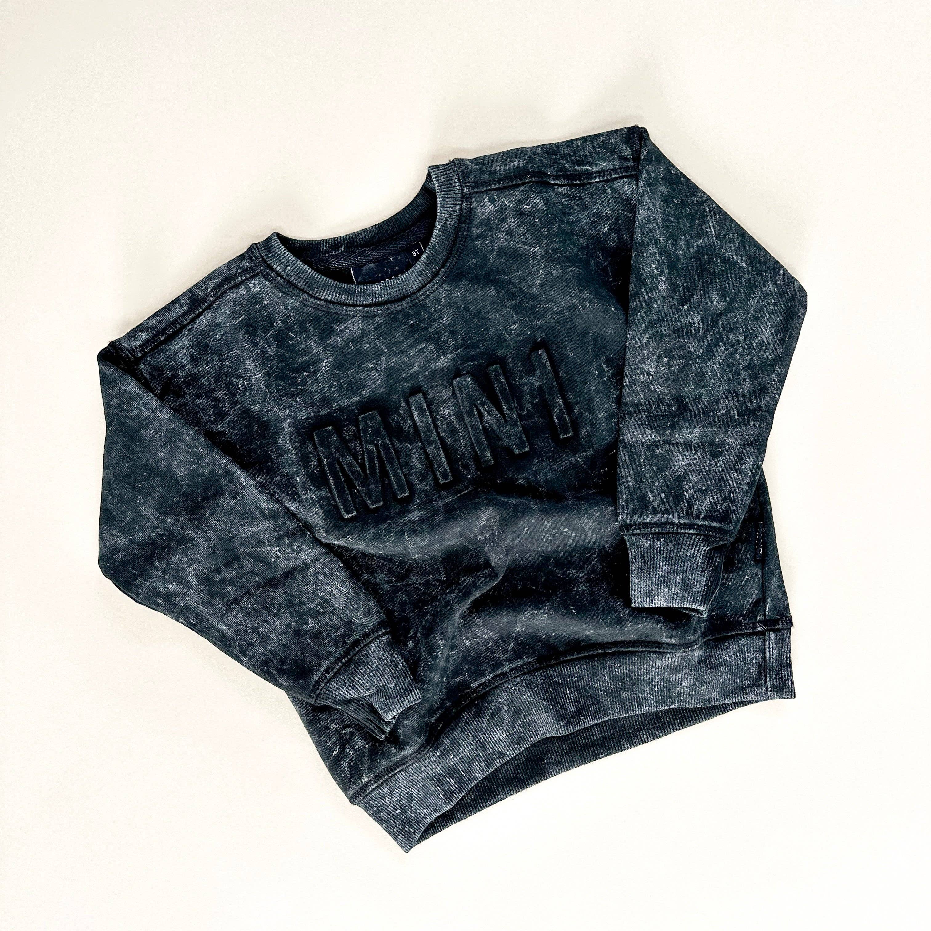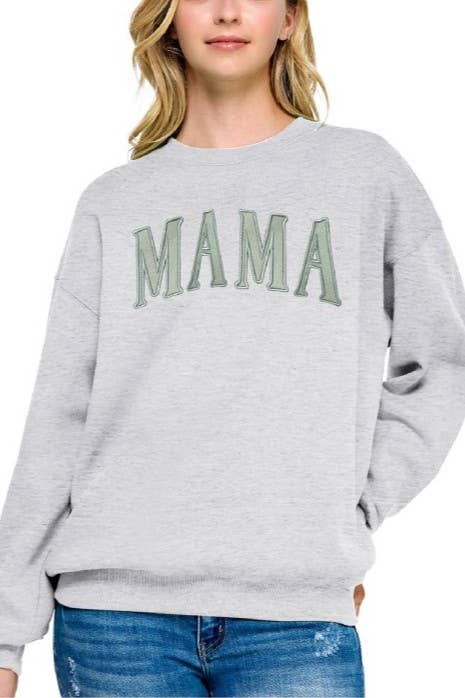60% Cotton, 40% Polyester Mama Design Color: Acid Wash Tide **Acid wash pattern will be unique to each sweatshirt | Acid wash gives garment an unstructured, worn-in softnes Ribbed Neckline and Cuffs •SIZING: Roomy fit. Ordering your normal size is recommended for a roomy fit. Size down if between sizes; Size up for an oversized look. Please refer to the size chart if you are unsure. •CARE: Gentle wash in cold water. Lay flat to dry.