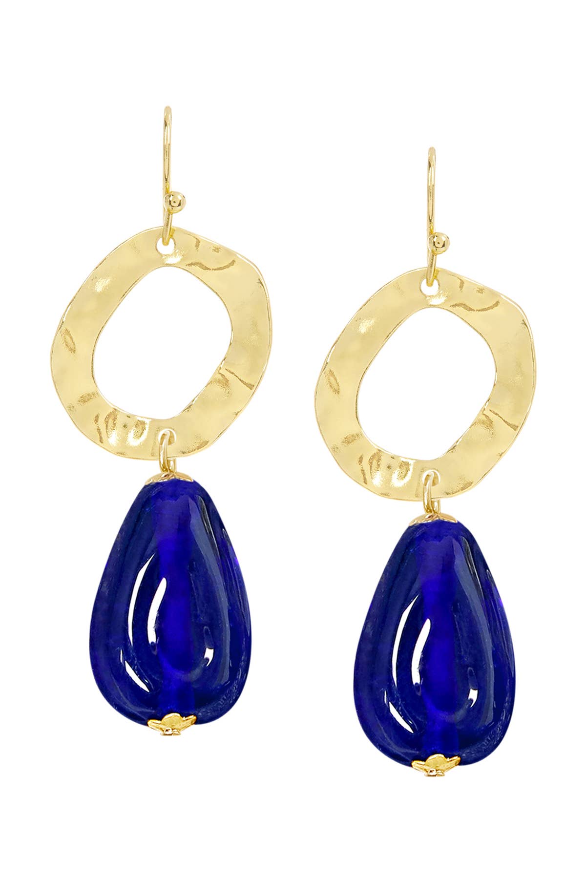 *laser cut resin yellow circle and tortoise open oval earrings with turquoise howlite or royal blue howlite gemstones *3.75 inches, 12mm gemstones *gold-plated stainless steel backings *lightweight