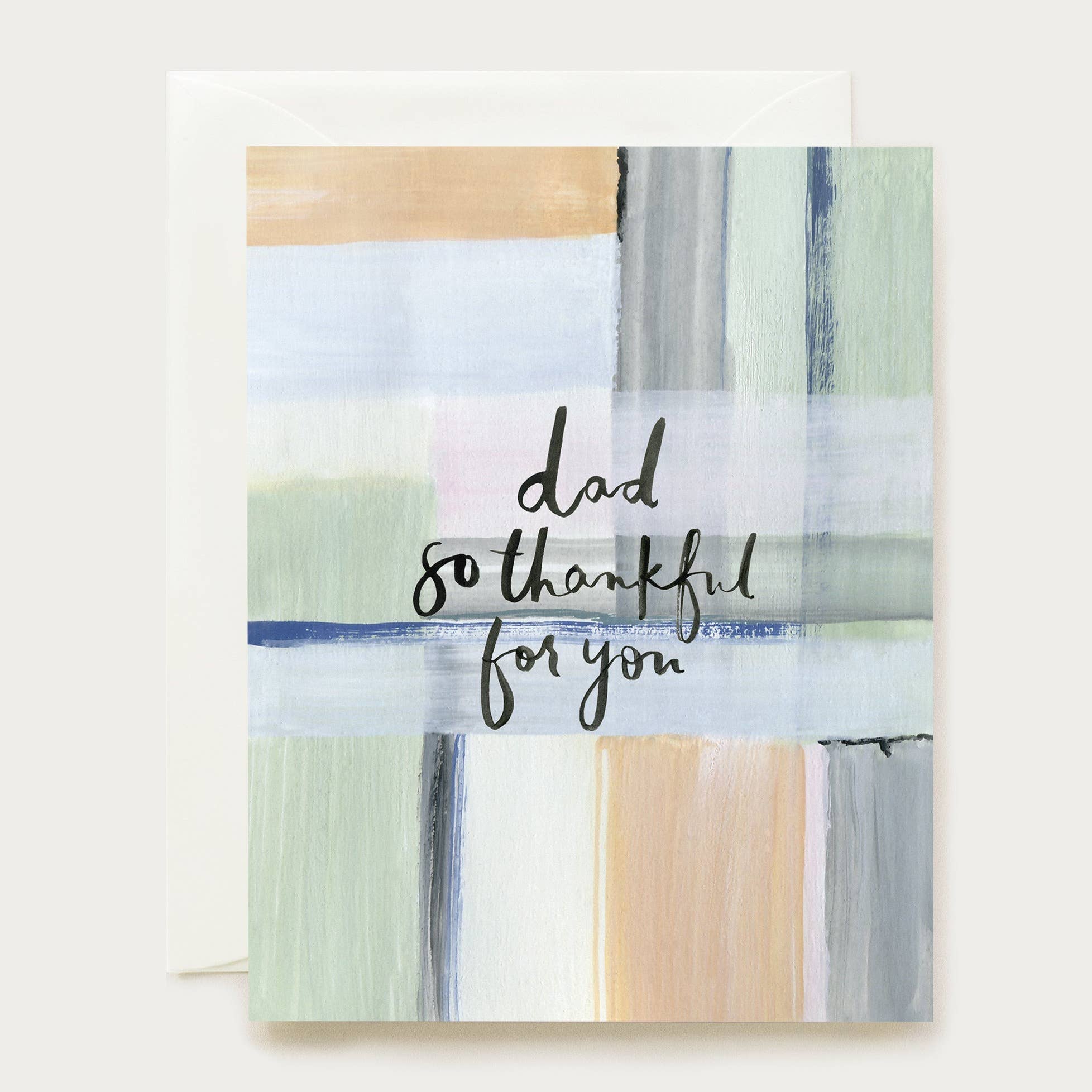 So Thankful You're My Dad. Hand painted scribble letterpress printed in terra-cotta and black. A2 Size, letterpress printed on high quality paper, white speckle envelope, in plastic cello bag.