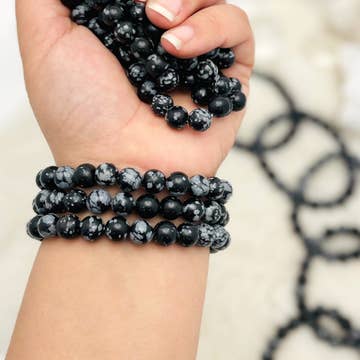 Wholesale Snowflake Obsidian Bracelet 8mm or 6mm - Crystals & Stones