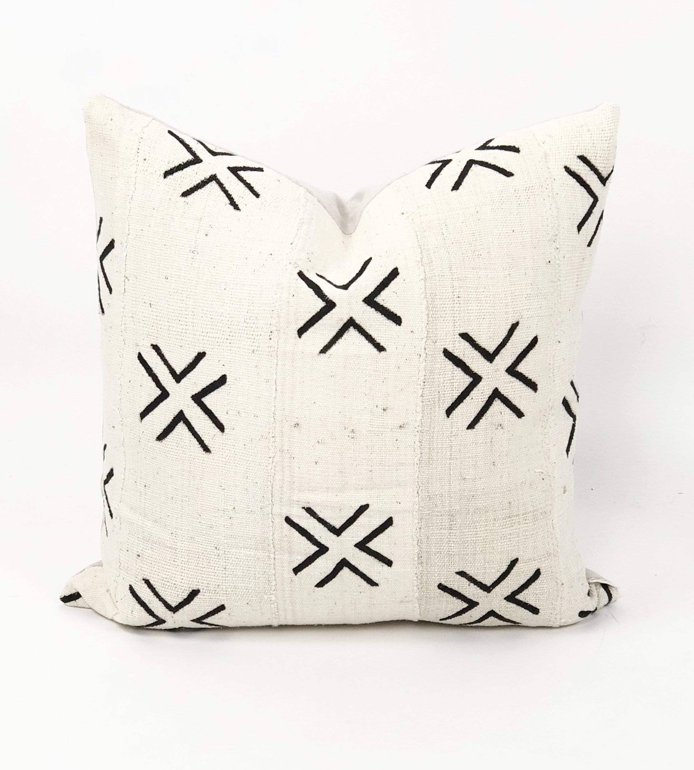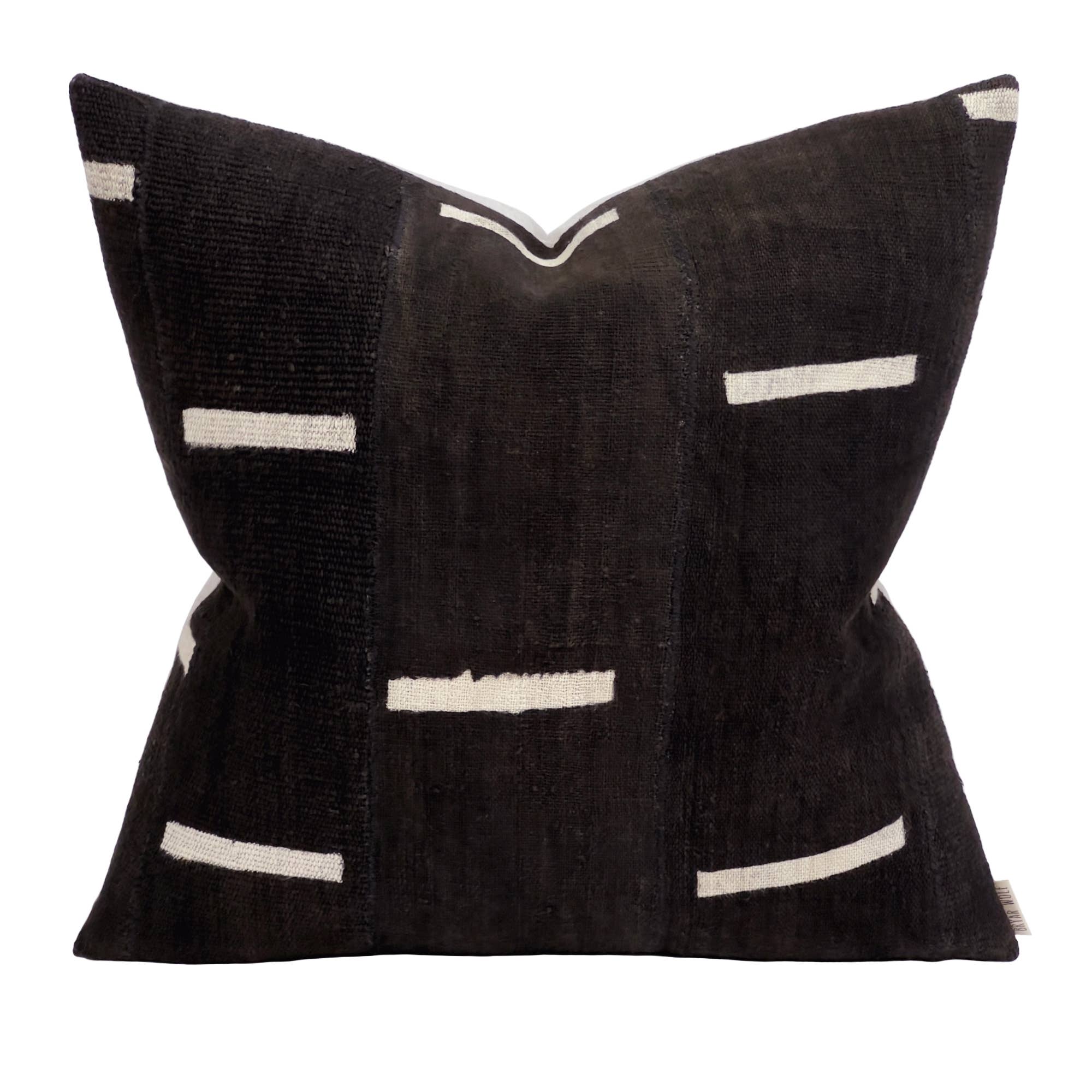 Bryar Wolf one of a kind handmade designer throw pillow. Made from carefully selected African Mud Cloth. One of a kind handmade designer throw pillow. Each piece is unique. Color: White Available in the following sizes: 12" x 20", 12" x 38", 14" x 22", 14" x 24", 14" x 46", 16" x 36", 17" x 17", 18" x 18", 20" x 20", 22" x 22", 24" x 24", 30" x 30", 22" x38". Our pillows include made in the USA 90/10 down insert forms and boasts a 233-thread count shell made from 100% premium cotton fabric.