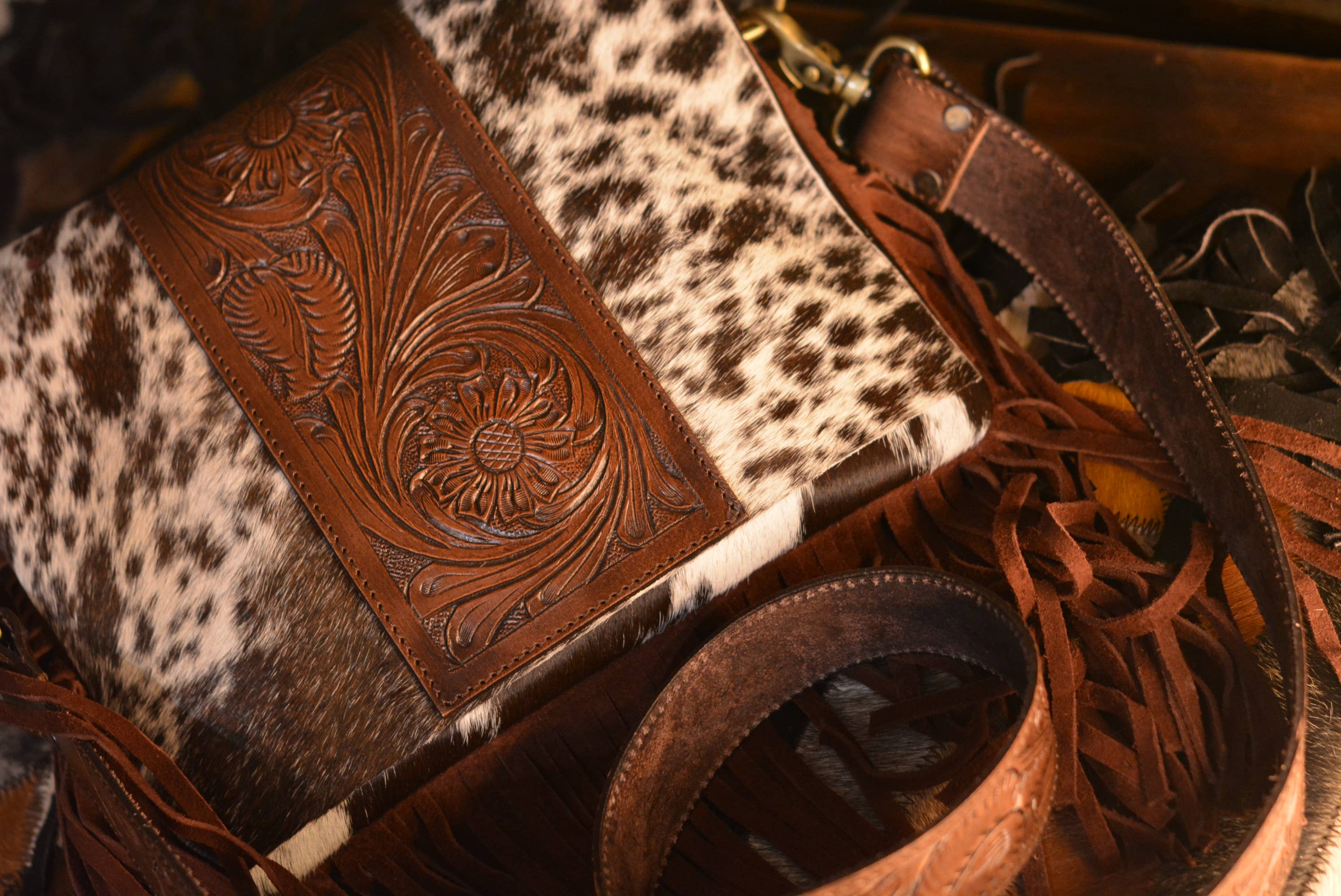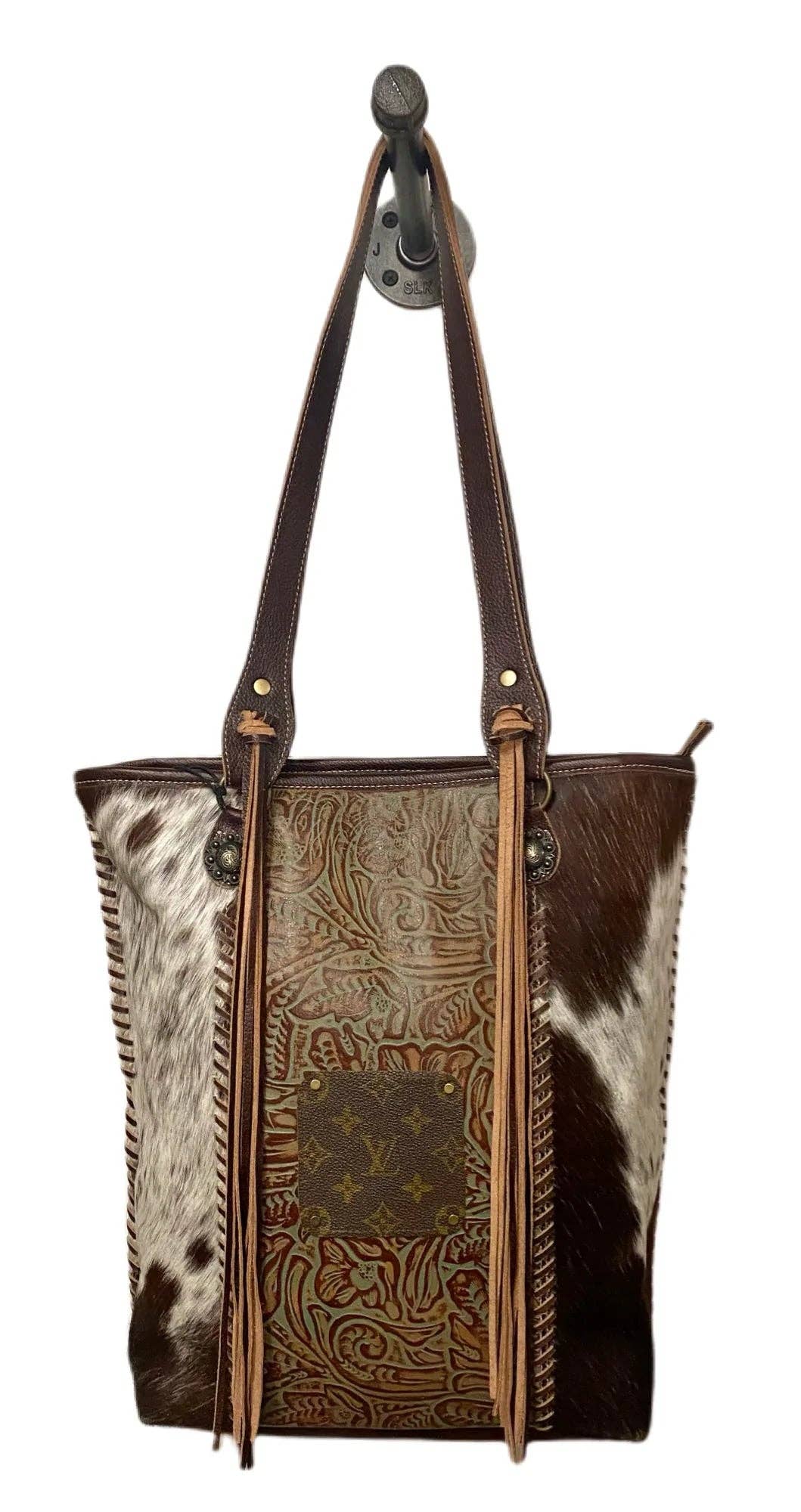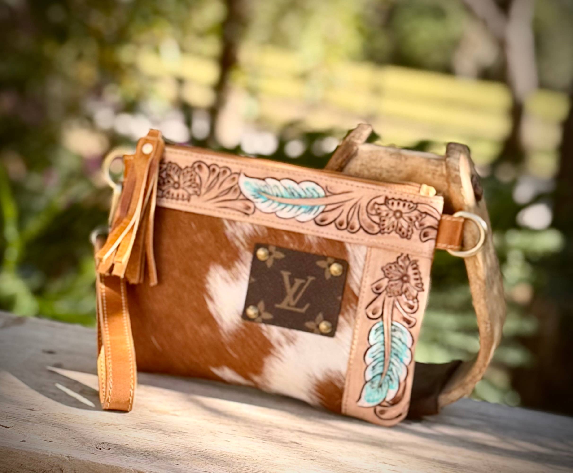 Upcycled LV Cowhide Leather Crossbody Wristlet Bag Western