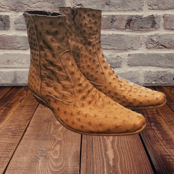 Men'S Handmade Leather Boots 𝗨𝗽𝗽𝗲𝗿: Genuine Ostrich Impression Leather 𝗜𝗻𝗻𝗲𝗿: Genuine Leather 𝗦𝗼𝗹𝗲: Genuine Leather. 𝗛𝗲𝗲𝗹: Genuine Leather 𝐂𝐨𝐥𝐨𝐫: Dual Tone Brown Style: Luxury One Side Zipper Closure Formal Wear Ostrich Leather Boots 𝗧𝗼𝘁𝗮𝗹𝗹𝘆 𝗛𝗮𝗻𝗱 𝘀𝘁𝗶𝘁𝗰𝗵𝗲𝗱 Available In Any Color Of Your Choice. Feel Free To Contact Us For Customized Color Orders.