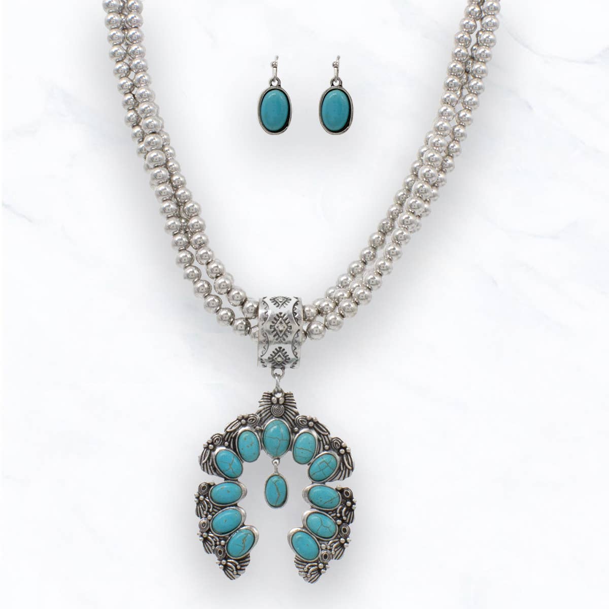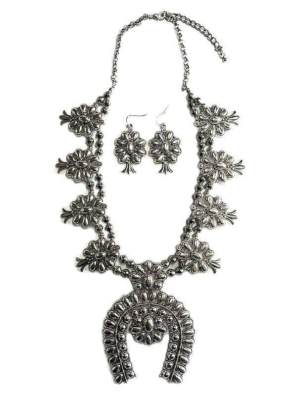 Antique Silver Beautiful Filigree Graduated Round Metal Pendant Necklace & Earrings Set FR6412 Antique Gold Beautiful Filigree Graduated Round Set FR3056 Beautiful Filigree Round Metal Dangle Earrings FR5225 Beautiful Filigree Round Metal Clip Dangle Earrings FR6411 Beautiful Filigree Round Metal Necklace Set Length : 16 1/2" + EXT 2" Pendant : 1 3/8" DIA Earring : 1 3/8" Material : Metal Metal Color : Antique Silver Earring Closure : Fish Hook Zinc, Hook: Brass Lead & Nickel & Cadmium Free