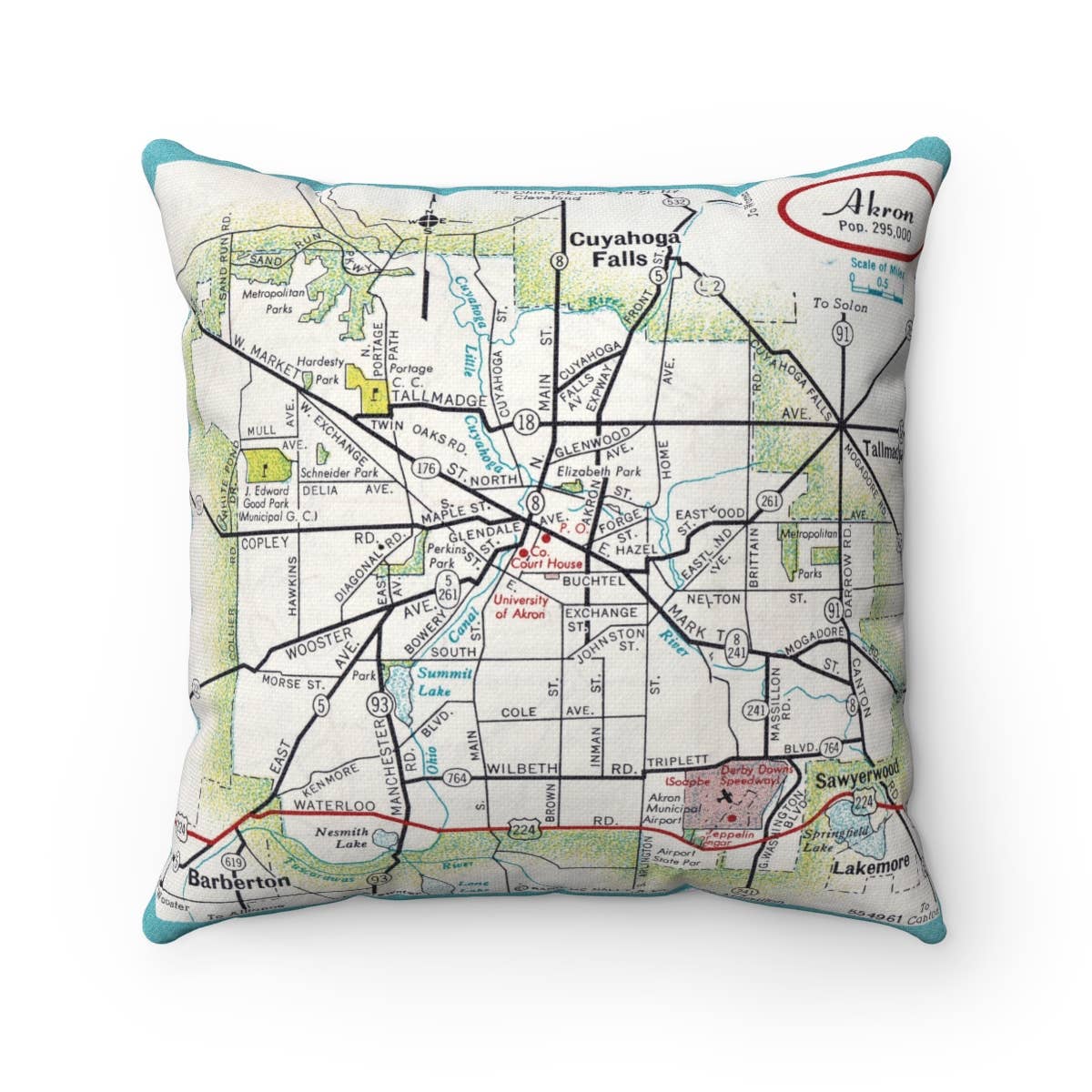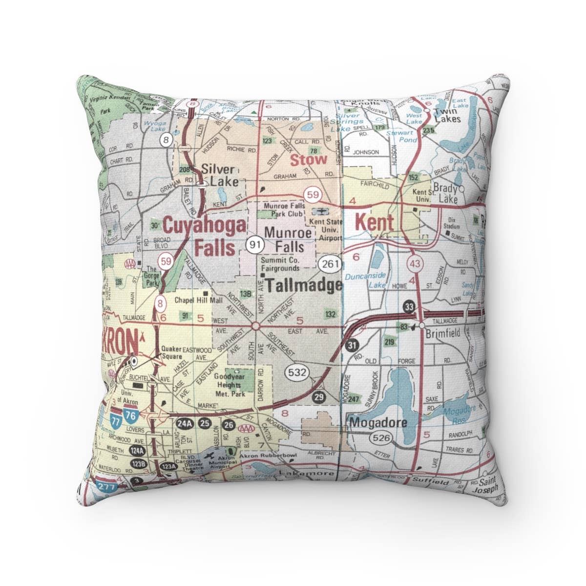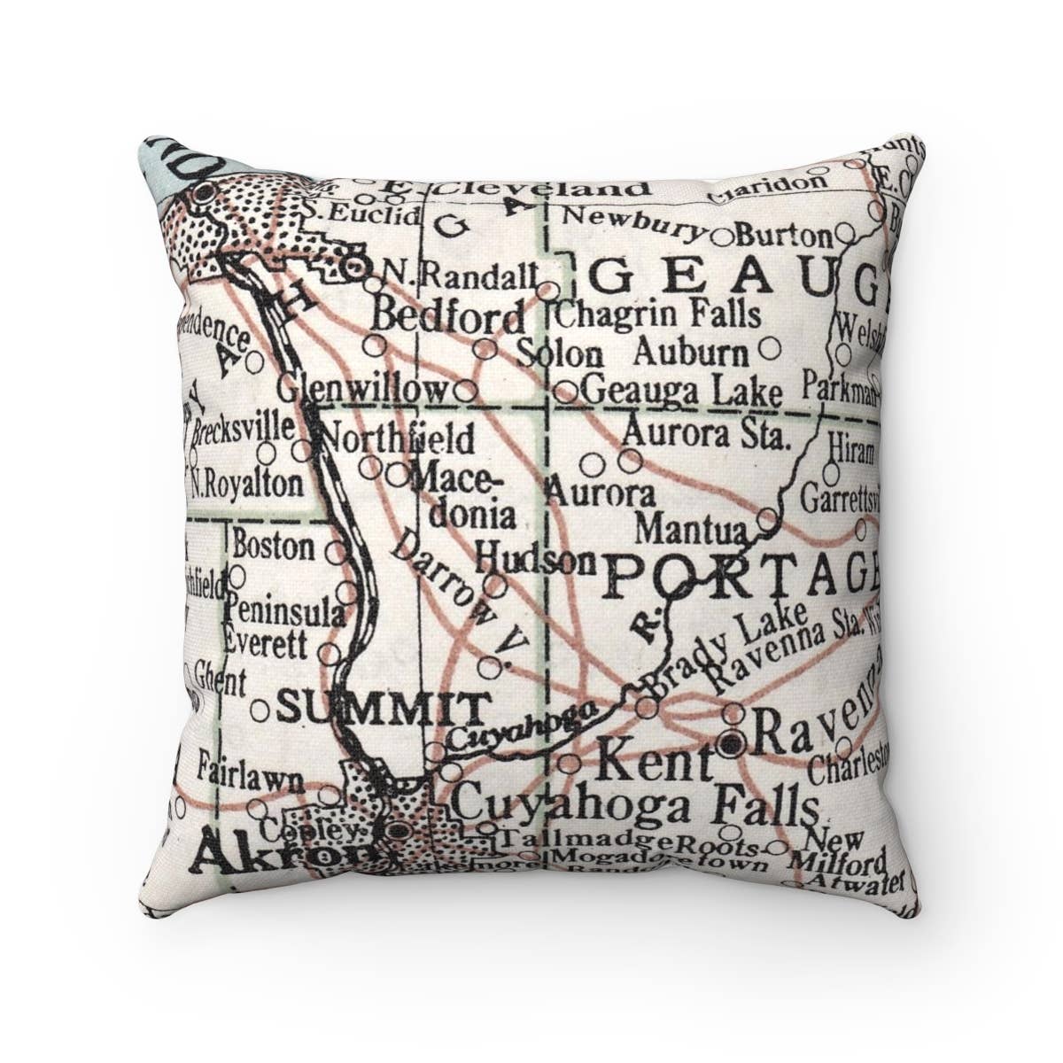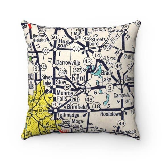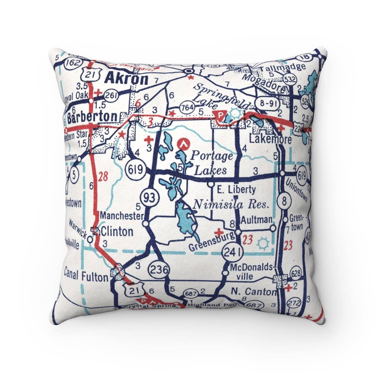 Portage Lakes Ohio Map Pillow – 18" Square Throw Pillow