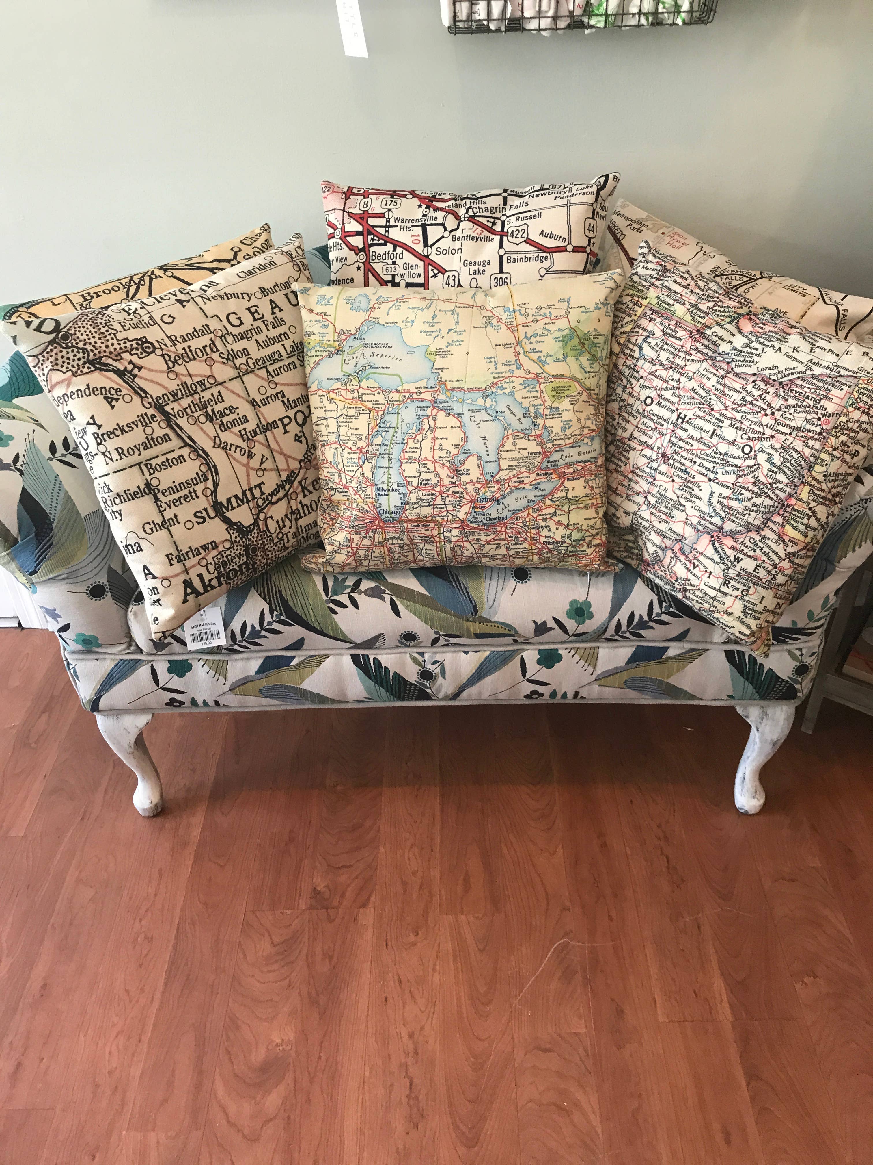 Elevate your store’s home decor selection with our 18" square vintage map throw pillow—a timeless keepsake that blends style and sentiment. Featuring a carefully selected vintage map on one side and a neutral linen-blend back, this pillow is designed to mix seamlessly with any décor. A cozy accent for beds, sofas, and reading nooks, it’s both decorative and meaningful. As seen in Country Living Magazine, Gift Shop Plus Magazine, and Seaside Retailer Magazine, this pillow is a proven favorite among customers looking for unique, high-quality gifts. Cotton/polyester/linen blend for a soft, durable finish Invisible zipper for a seamless look Hand wash only; care instructions included Available with or without insert to meet customer preferences Each pillow is designed and printed by hand by our all-female team. *** Vintage map pillow Custom map throw pillow Personalized throw pillow Decorative map pillow Custom location pillow Travel-themed pillow Unique sofa pillow