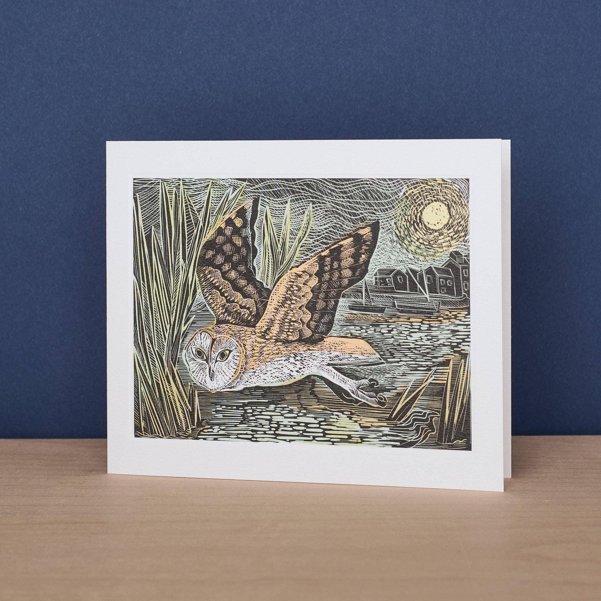AH1967: Fishing Otter by Angela Harding. This card is 140mm x 170mm, printed on matt felt board and the image area is debossed. Packed with a buff coloured envelope.