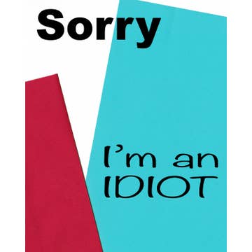 Say 'sorry' in the funniest way possible with Cardstalked's unique apology card. Perfect for lightening the mood after a misunderstanding, this 5x7" card is printed on 16pt cardstock and comes with a deluxe white envelope and UPC sticker. Plus, a portion of each sale goes to charity! Let Cardstalked help you make amends without taking yourself too seriously. I've given this card to my wife and the IT manager at my work, and they both thought it was funny. I still lost my internet privilege for a week, though. Outside: "I'm sorry you saw my browser history." Inside: "However, if that's not what you are mad about, then forget I said anything."