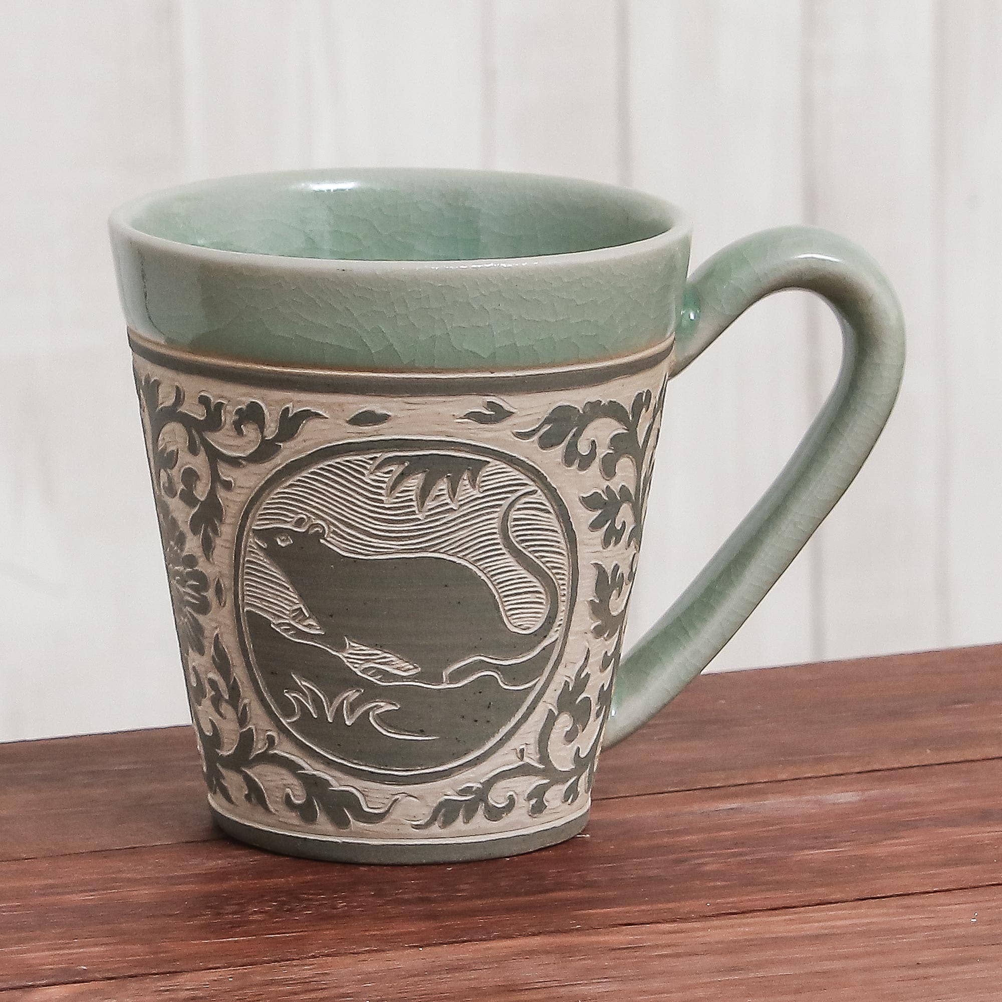 Harness the powerful, primeval energy of the boreal forests with this elegant, artisan-designed Timber Imprint Mug. Pale, moonlit figures of woodland creatures and folkloric-inspired imagery juxtapose upon a background of rustic brown, resulting in an outstanding stoneware masterpiece for the home or gift.