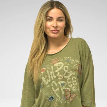 Our Black Lace Tee with Velvet Roses and Queen Bee Appliqué is lightweight yet luxe. This tee drapes beautifully and features 3/4" sleeves. Comes in sizes S/M/L/XL/1X/2X (1:1:1:1:1:1). Perfect for layering under jackets or wearing solo—grab a 6-pack for just $32 and let your customers soar through the season in style! Key features include: Lace with velvet roses Queen Bee applique 3/4" Sleeve Color: Black Sizes: S/M/L/XL/1X/2X (1:1:1:1:1:1) 6pk Pack of 6