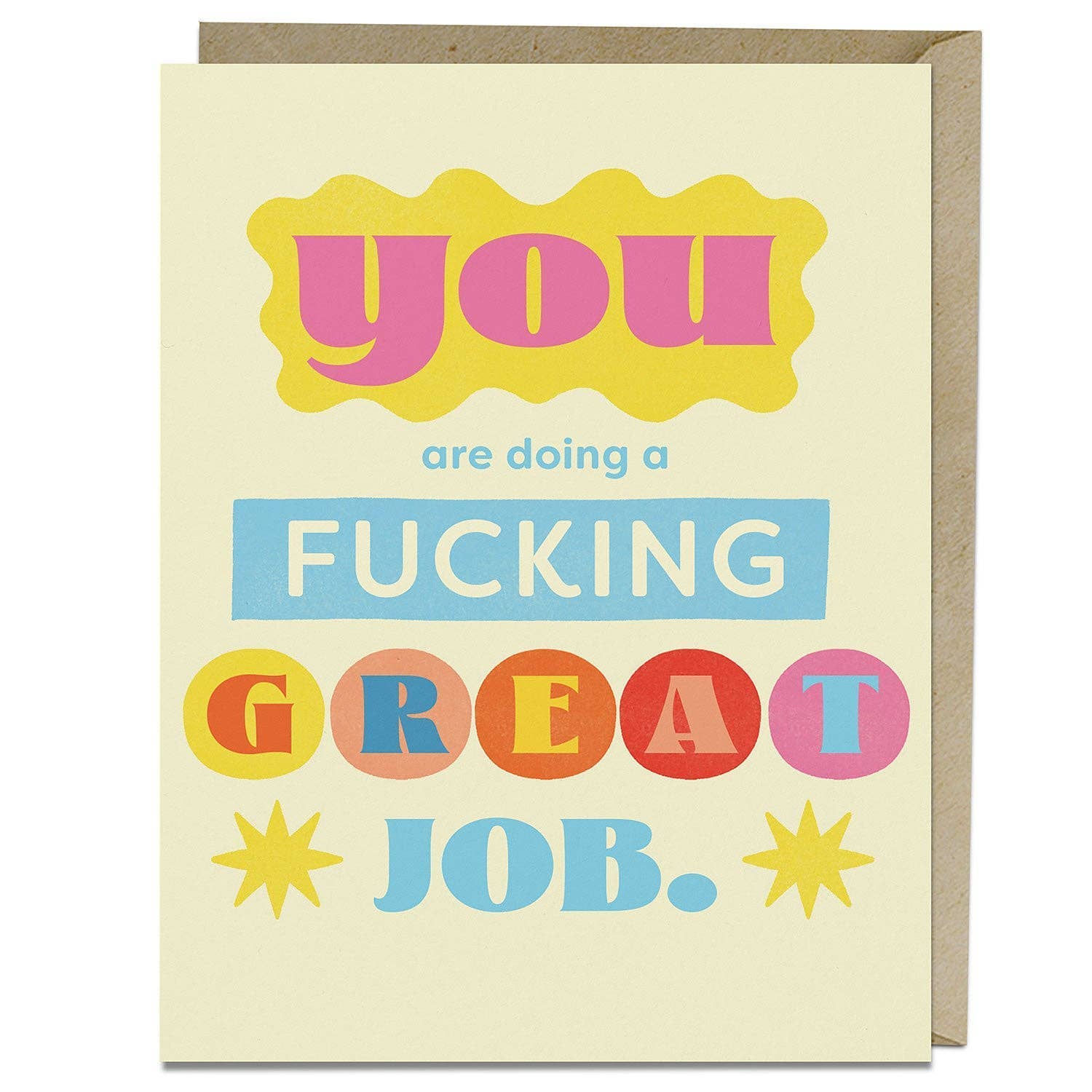 You're a mess / amazing! Perfect for someone needing a little encouragement. From our Strike That! collection. So you can tell it like it really is (but not get in trouble). • Card size is A2 (4.25"x5.5") • 100% recycled card stock • Blank inside • Letterpress printed in Chico, California