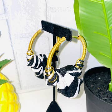 Our world renown "Queen Hoops" have been in production for over five years now. They made their grand debut when we produced all the accessories for “Queen B” Herself at her 2017 “Push Party” baby shower. Soon after this event our “Queen Hoops” became a fan favorite, BOLD but LIGHT we have perfected our technique with each pair! Our Queen Hoops are always based on hypoallergenic hoops with surgical steel posts. Our Kabore Queen Hoops measure approximately 1.5 inches in diameter. Our hoops are designed with a variety of materials including cotton, African Wax fabric, Lycra/Spandex, or Embroidered Lace, or jean material.
