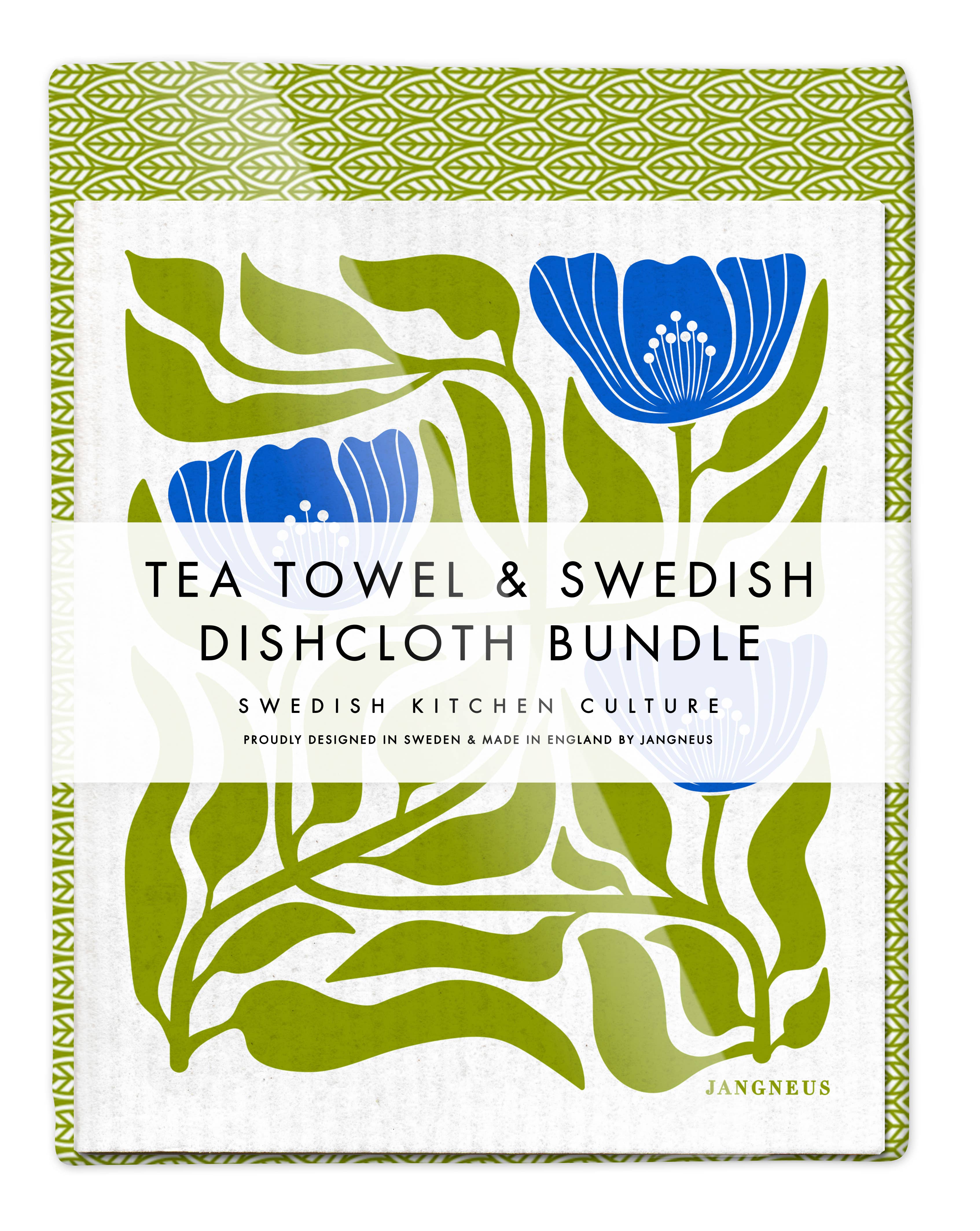 This matching combination of dishcloth and tea towel is guaranteed to bring fresh Scandinavian style into your kitchen. Used in Swedish kitchens since the 1950s, these tried and trusted dishcloths are made of all natural and renewable materials. Highly durable, they are great for washing up, general cleaning and mopping up spills. The bundle also makes for a great gift. The bundle consists of 1 tea towel and 2 matching dishcloths. Designed by Jangneus in Sweden. Dishcloths size: W6.75" x L8" Tea towel size: W19" x L30" . The dishcloths are made of 70%