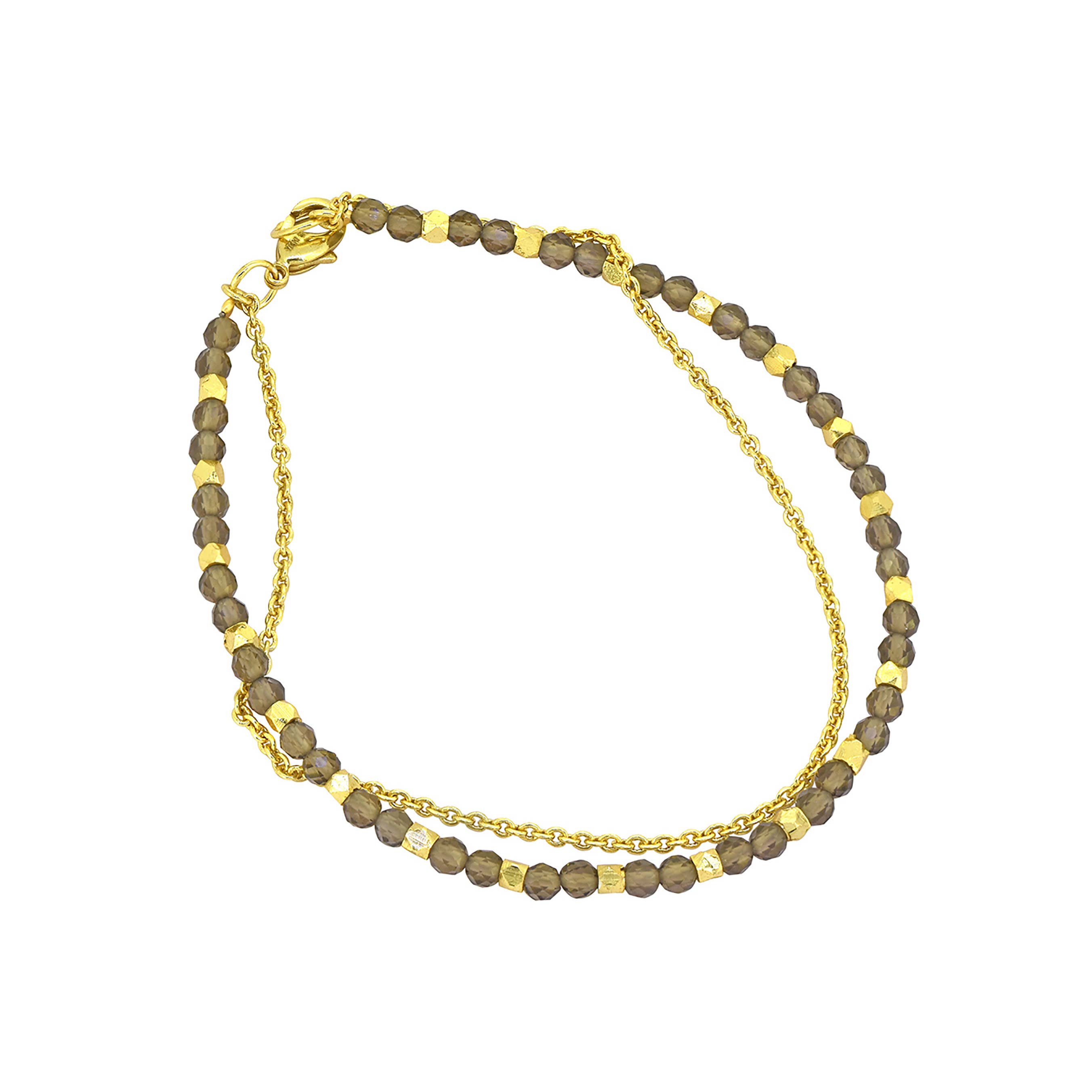 Stay rooted and calm while wearing this stretch bracelet, made of faceted garnet stones. Tree of life - deep grounding, faith. 18 karat gold plated over brass. Garnet - friendship, love, guidance. Pendant - 0.375" long. 7" diameter. Size: 4mm.