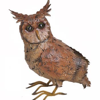 Snowy owls are symbols of endurance, patience and wisdom. These majestic creatures are perfect for a perch in either in your home (front porch or entryway, even on your mantle or your garden! Handcrafted from recycled 40-gallon oil drums in Zimbabwe, they are another wonderful example of creating beauty from waste - something African artists do uniquely well. Order a whole family of metal animal sculptures today! Small: 7" x 3" Medium: 9" x 4" Large: 13" x 5" Made in: Zimbabwe