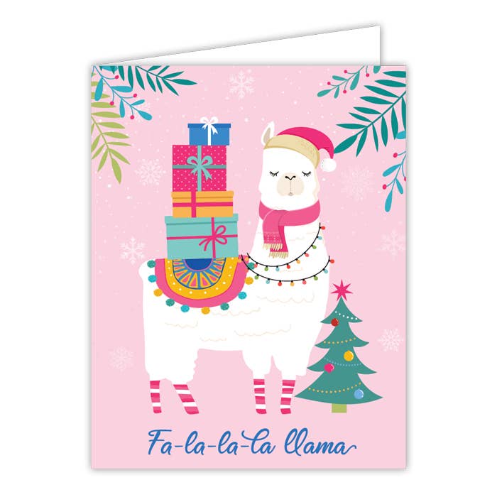 This cute Holiday card featuring an adorable illustration of an alpaca gives this card a cozy feeling. Perfect for any animal lover to cherish. A2 Folded Card (4.25"x5.5") | Full Color Card and Gold Foil | Blank Interior | Cream Envelope | Made in the USA.