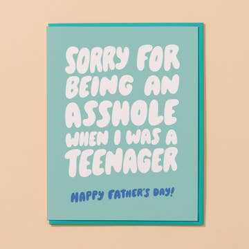 dads love you no matter what…no matter what butterfly clips, braces, and sambas you thought were cool in 7th grade. make sure you thank them for that // OUTSIDE: thanks for loving me through all of my awkward phases, happy father's day! INSIDE: blank, CARD SIZE: (A2) 4.25 x 5.5”, MATERIALS: 110 lb recycled paper + recycled kraft envelope