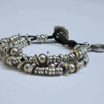 Silver Collection bracelet, bestselling design handmade in Spain with genuine leather, sterling silver plated beads and magnetic closure.