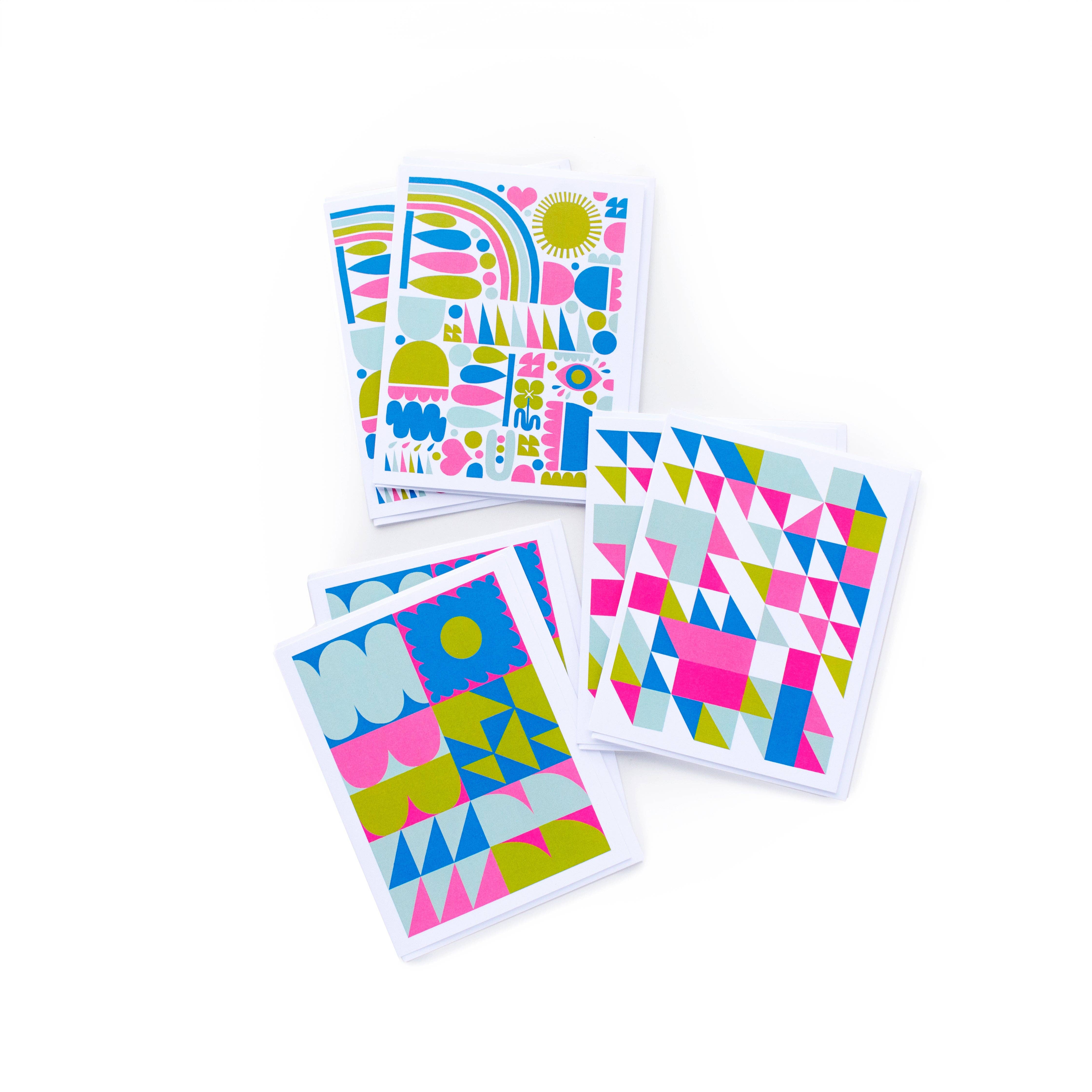 An assortment of checks and grids that bend space and time. • Assorted set of 8 cards with envelopes. (Individual cards available in separate listings.) • 4 designs, 2 of each • Blank inside • A2 (4.25" x 5.5") • 100# FSC-certified paper • Packaged in a clear box. Back of box includes an insert displaying all 4 designs. • Flat-printed • Printed in the USA