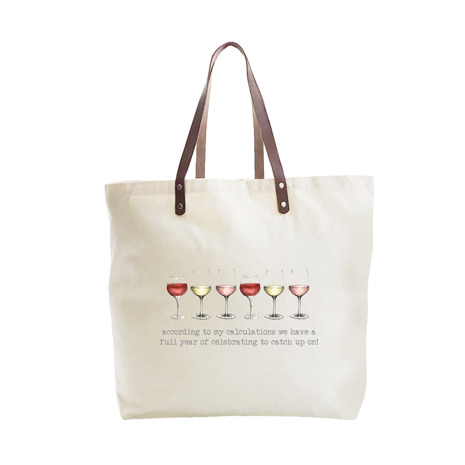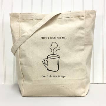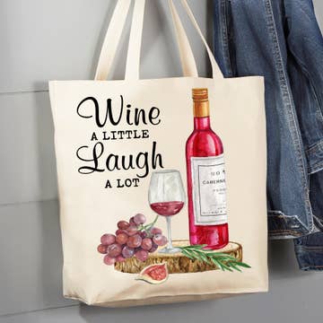 "I don't care if the glass is half-empty or half-full. Is there wine in it?" 100% cotton tote bag. Size: 14.75x14.75x5 **Customizable** Add your logo to the opposite side of the tote! Include your email address, and we'll let you know how to send us your logo.