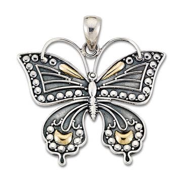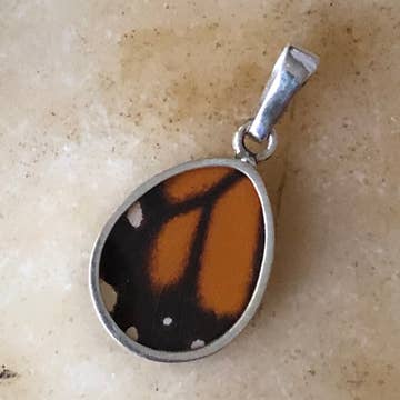 Real butterfly wing pendant, encased in resin using a proprietary process, on a sterling silver bail.