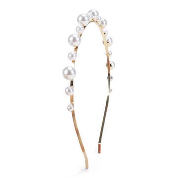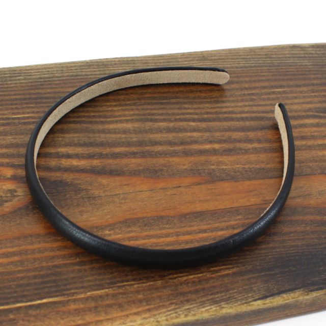 Signature leather headband with repeating gleaming gold bars along with band and polished signature stretch closure. Layer two headbands together for a sleek, ultra-glamorous look! 3/8" Width.