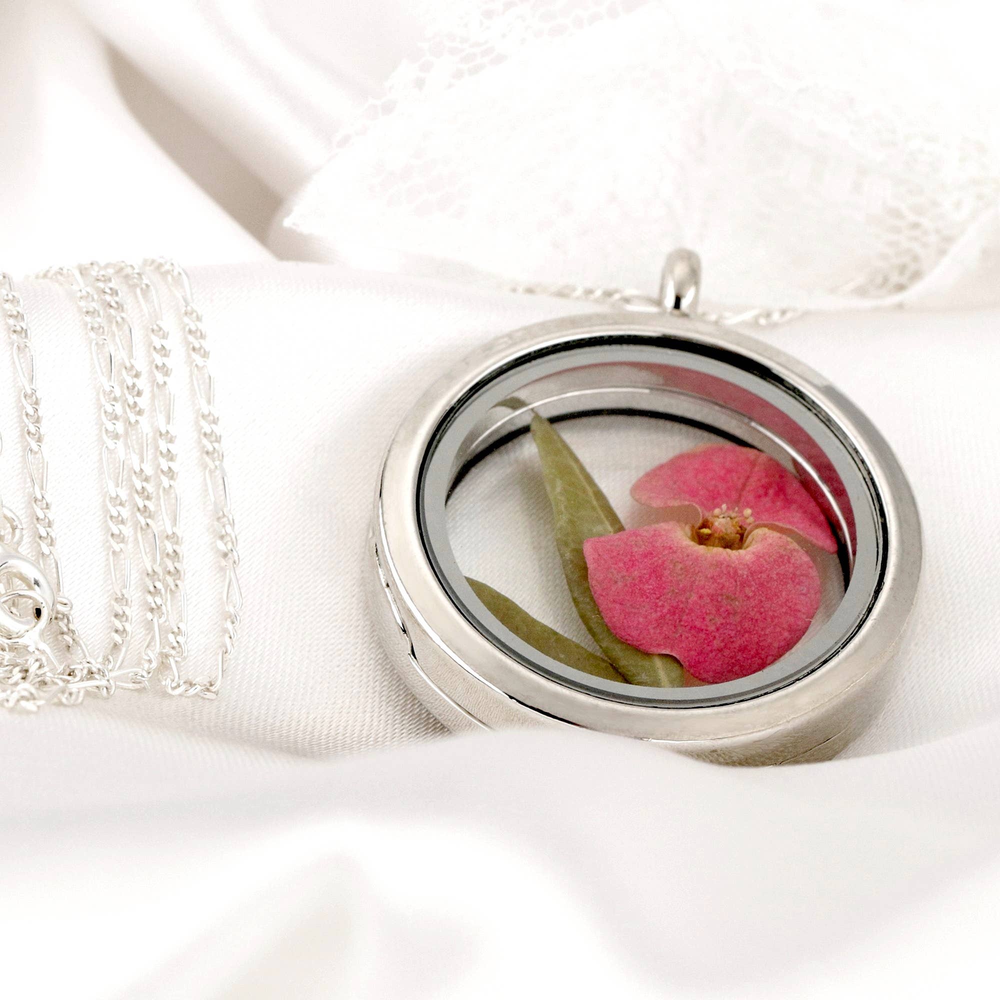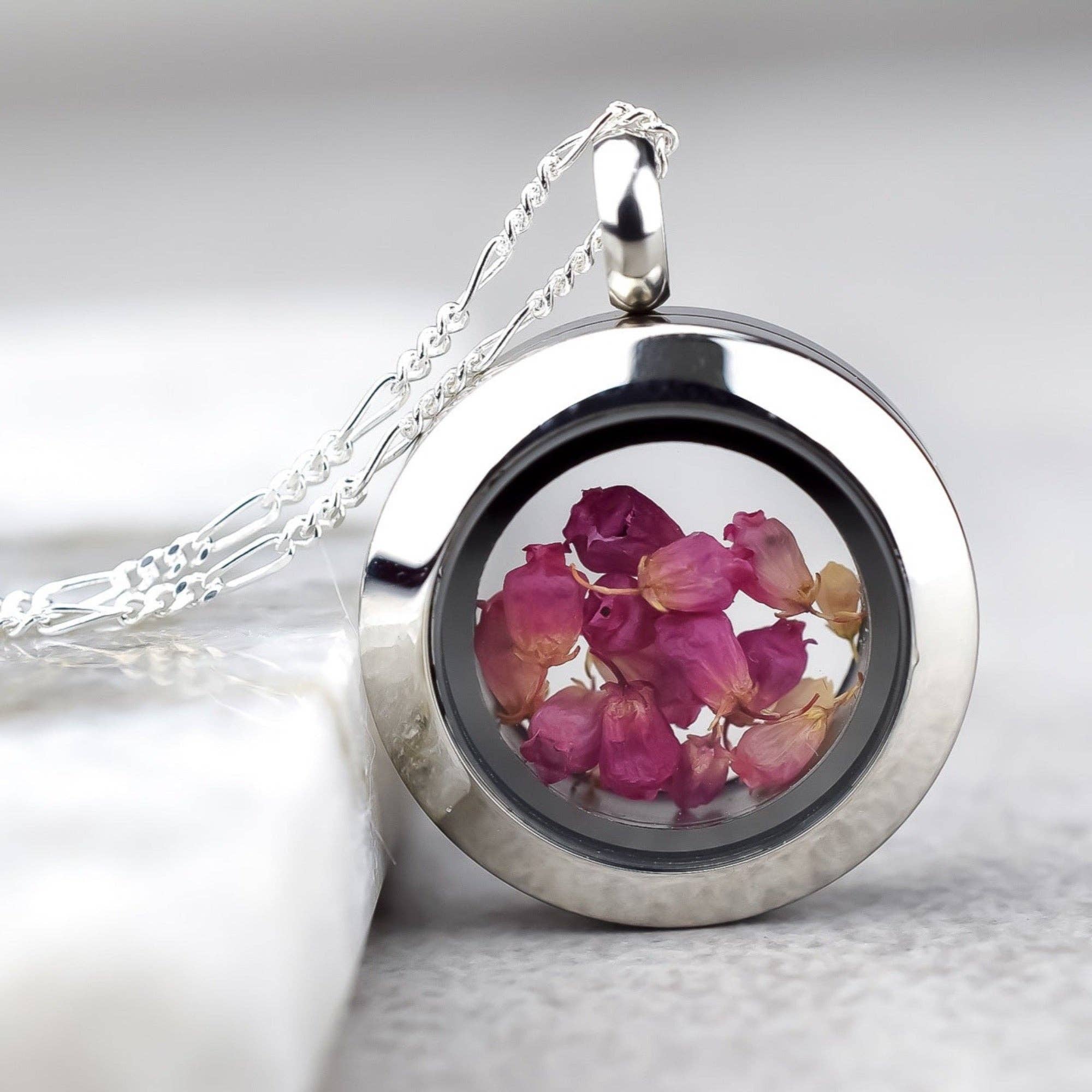 Wholesale Dill Flower Real Leaf Locket Chain - 925 Sterling Rose Gold Plated Necklace - K925-66