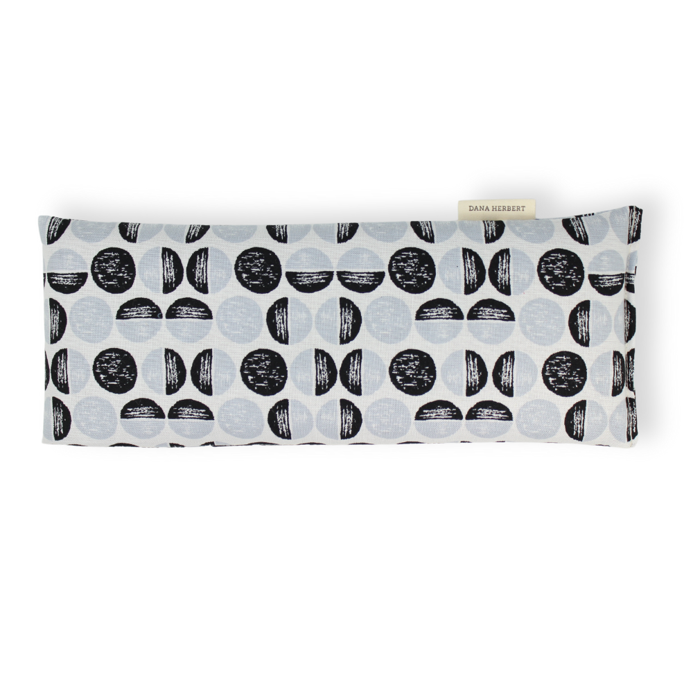 This eye pillow is perfectly weighted for gentle relaxation. Place over the eyes while laying on your back and let the flaxseed conform to your silhouette. Use for meditation or yoga. Silk case filled with flaxseed and lavender. 8.5" x 4"
